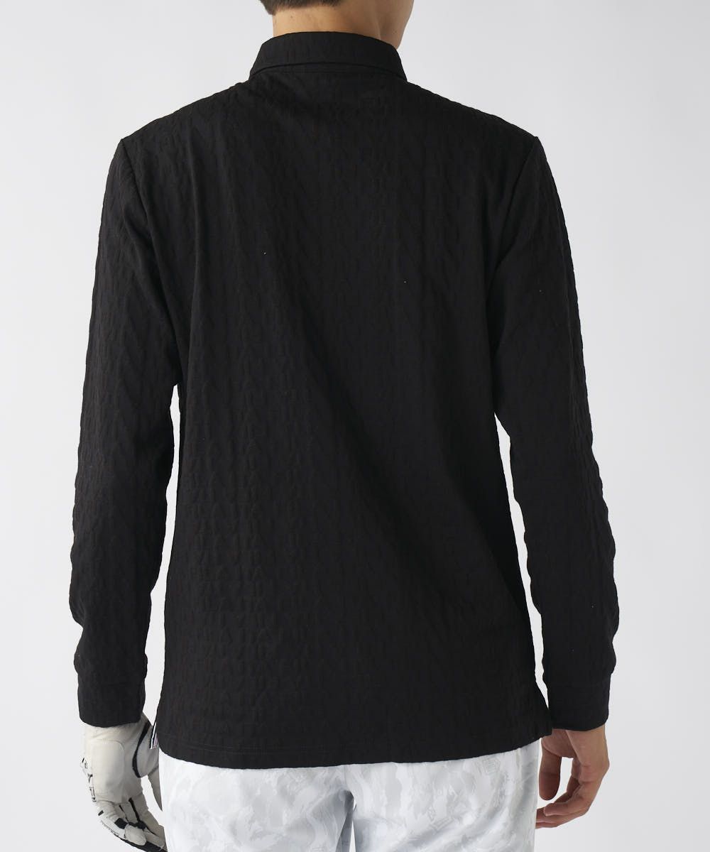 表情豊かな3Dジャガードを素材に採用し、上質で快適な着心地を提供します。生地の凹凸が肌への接触を減らし、サラッとした肌ざわりをキープ。UVカット機能付きで、ゴルフの大敵である紫外線から肌を守り、一日中アクティブに楽しめます。