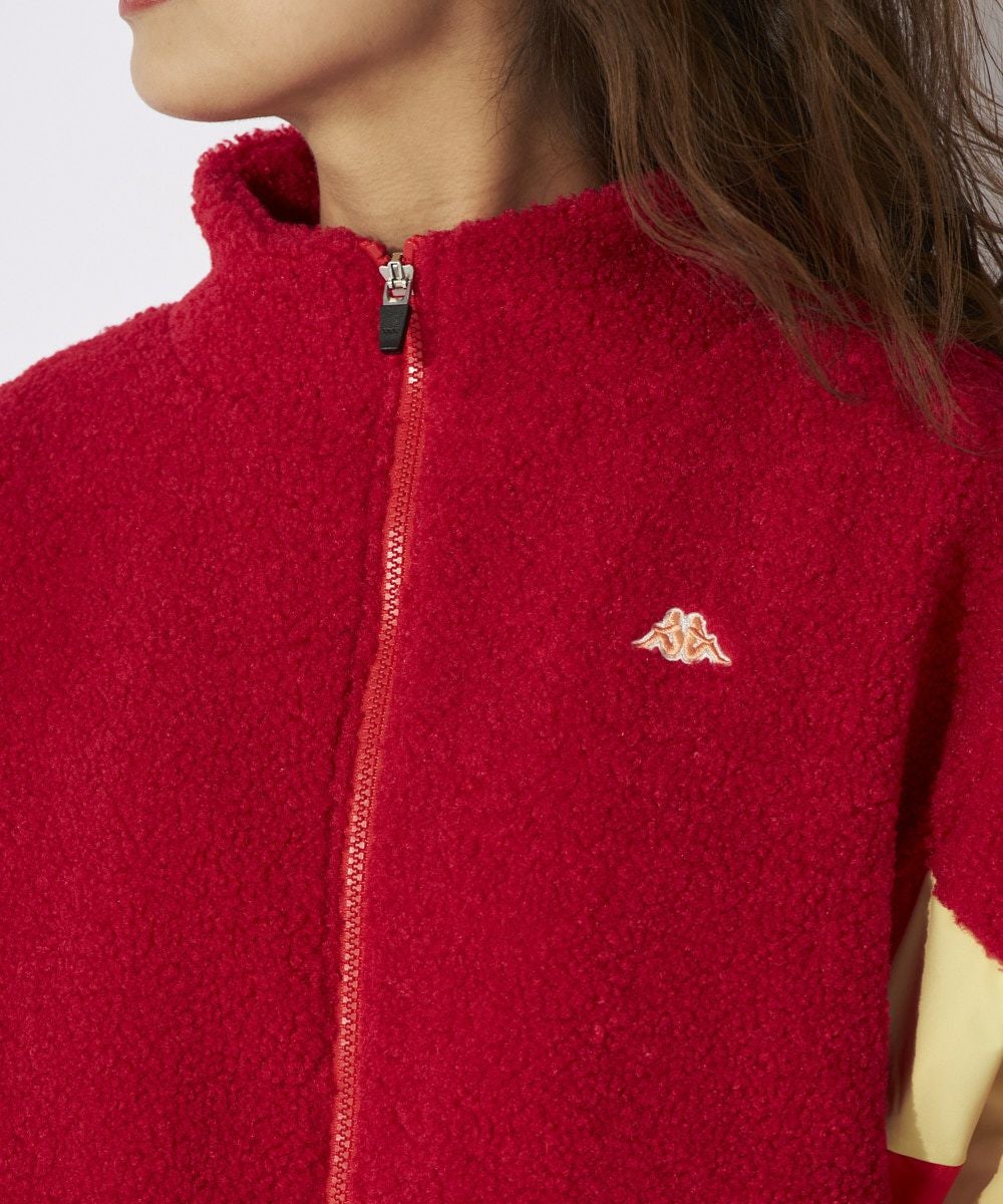 異素材と配色切替のボアフリースジャケットです。ドロップショルダーシルエットでスポーツMIXコー デにもオススメです。