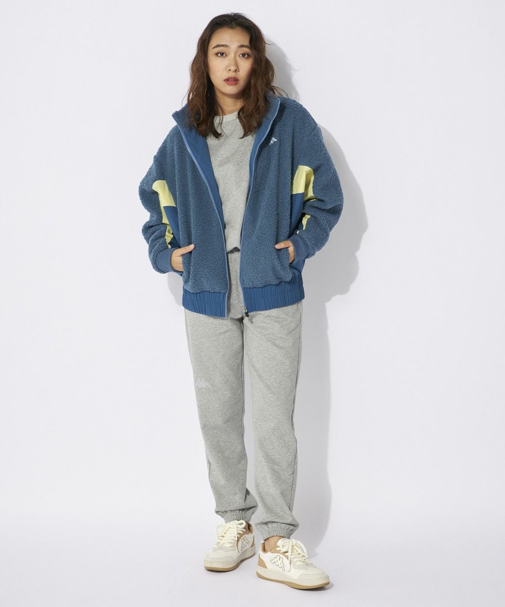 異素材と配色切替のボアフリースジャケットです。ドロップショルダーシルエットでスポーツMIXコー デにもオススメです。