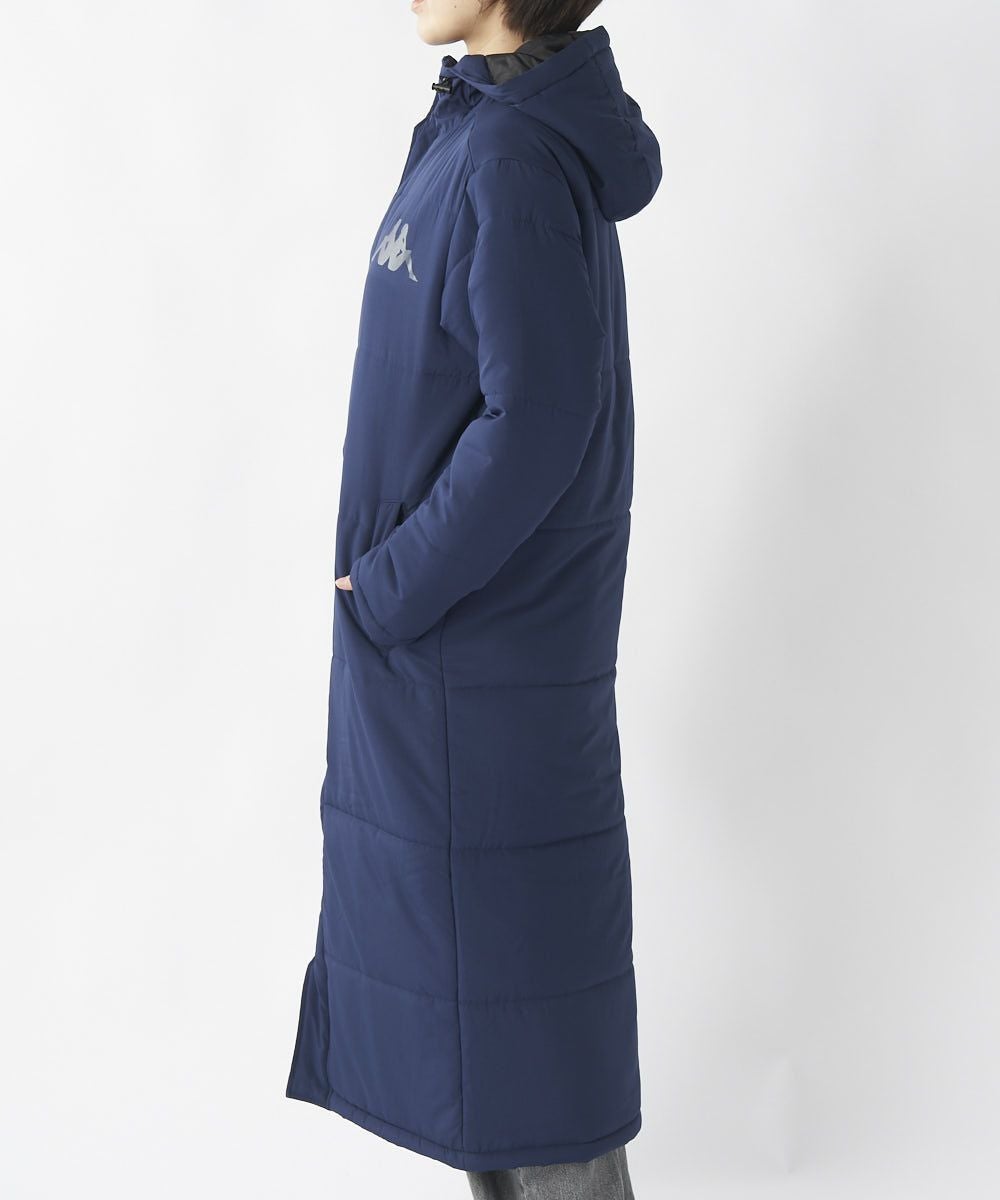 軽量の表生地を採用したエンボス中綿ロングベンチコートです。程よい中綿の量でライフスタイルシーンでもスポーツシーンでもお勧めです。
