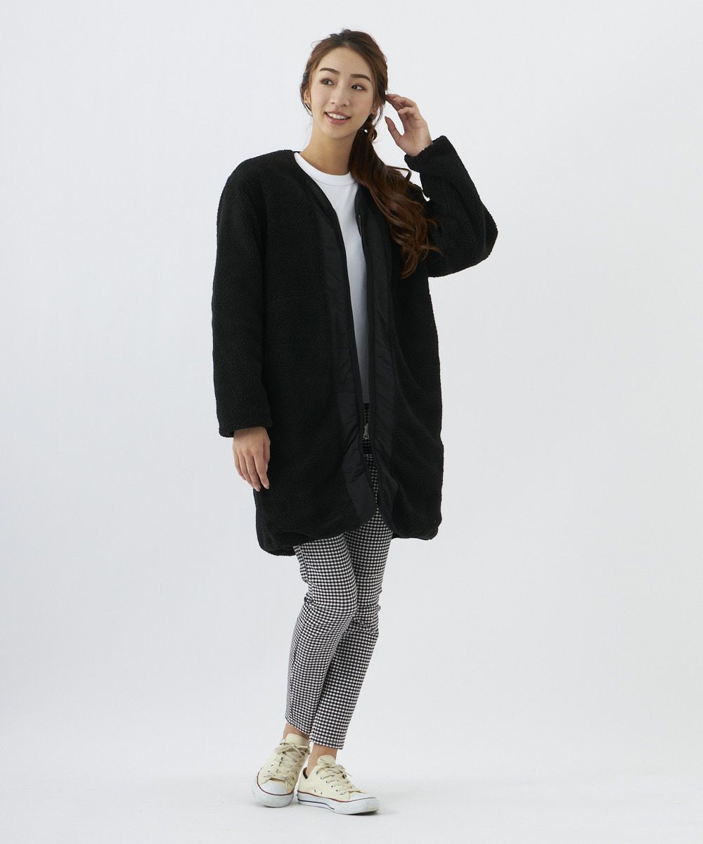 ボア・キルトどちらの素材も楽しめる、リバーシブルのコートです。 風を通しにくいしっかりとした生地感で、冬でも暖かい。