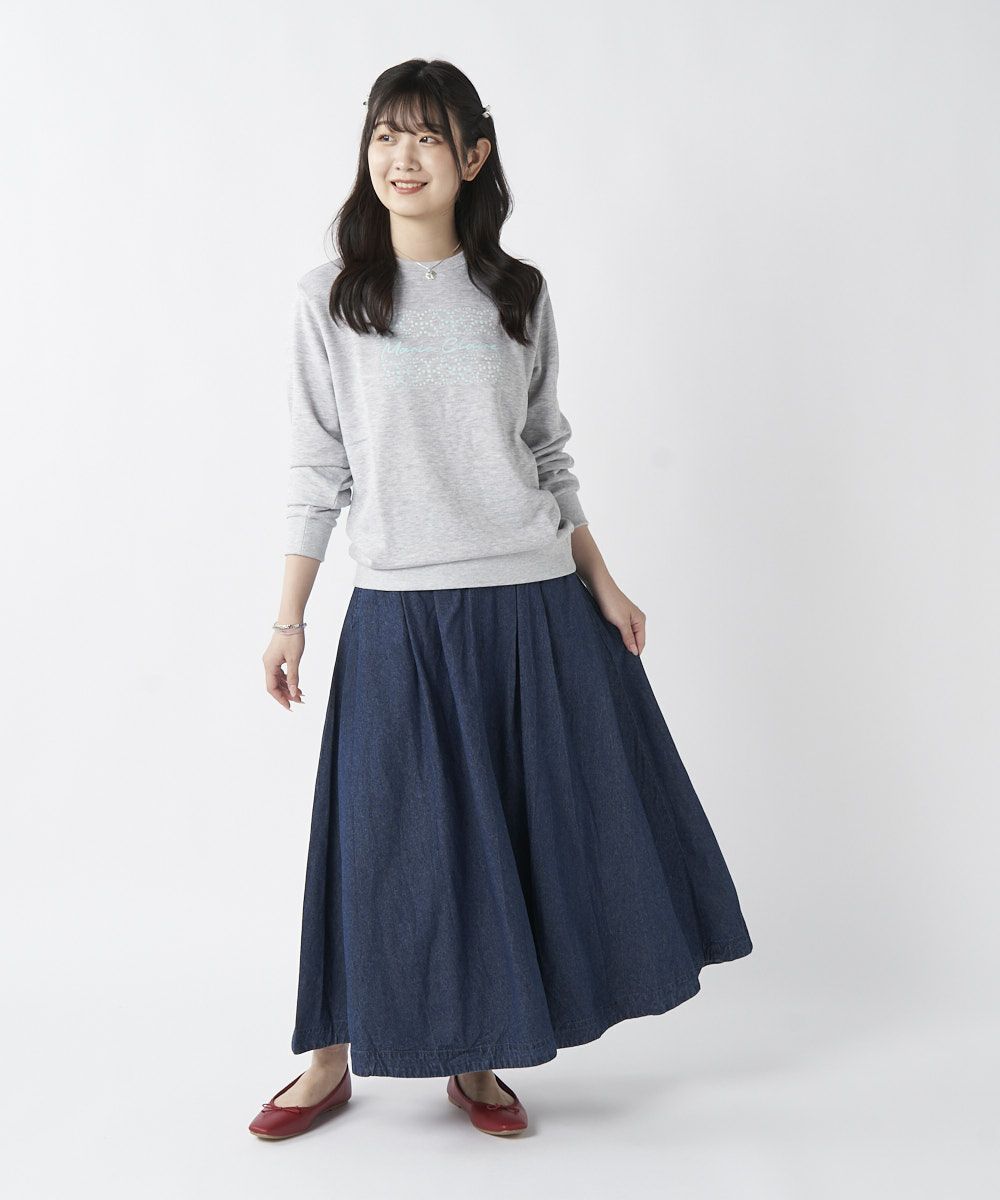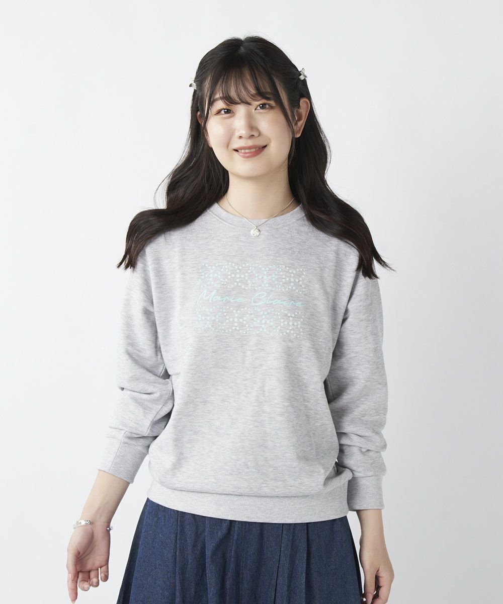 筆記体とモチーフデザインがおしゃれなスウェットです。モチーフ部分はグラデーションカラーにもなっているのも特徴です。