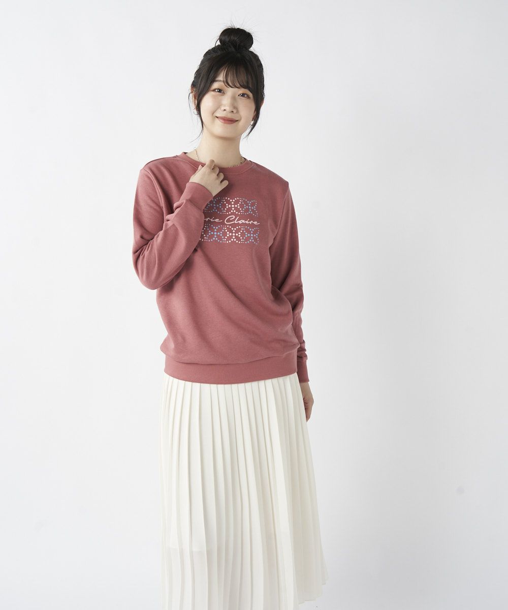 筆記体とモチーフデザインがおしゃれなスウェットです。モチーフ部分はグラデーションカラーにもなっているのも特徴です。