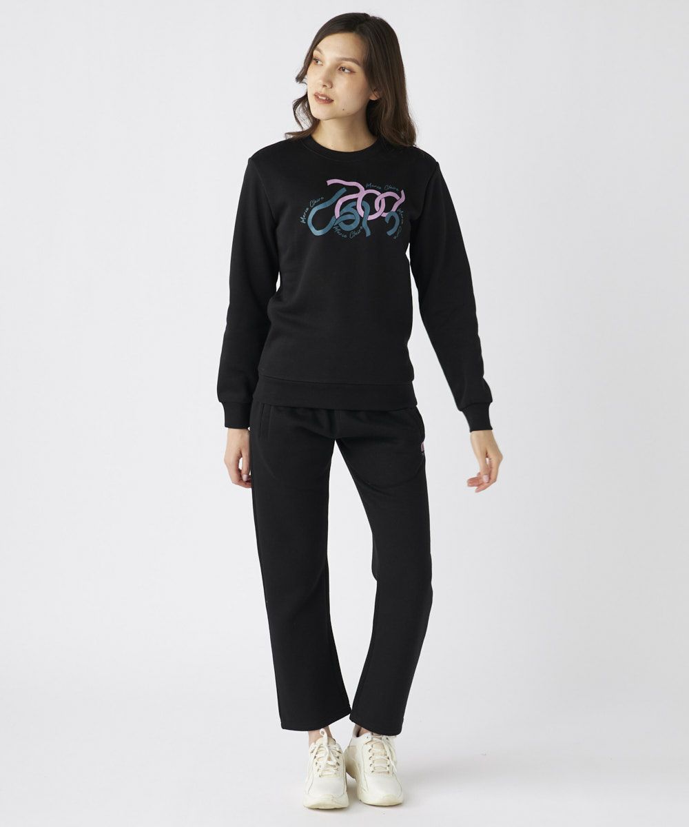 オシャレなグラフィックが目をひくデザイン。同素材のスウェットパンツのロゴも、同じカラーで合わせているので、セットアップでかっこよく着用いただけます。