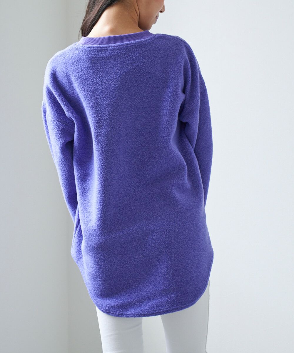 あったかライトボアフリース素材のクルーネックタイプ。フロント刺繍がポイント。