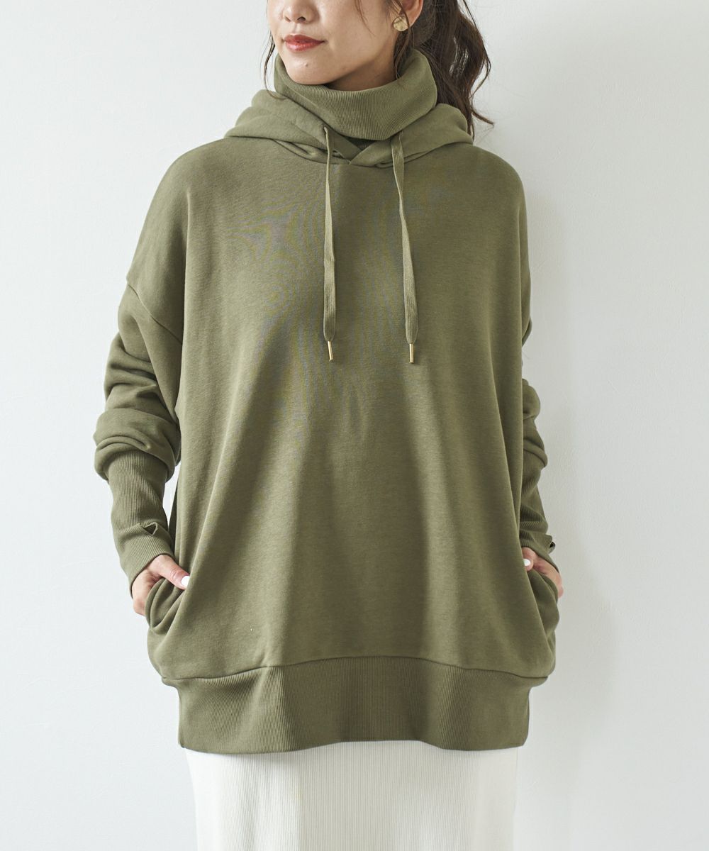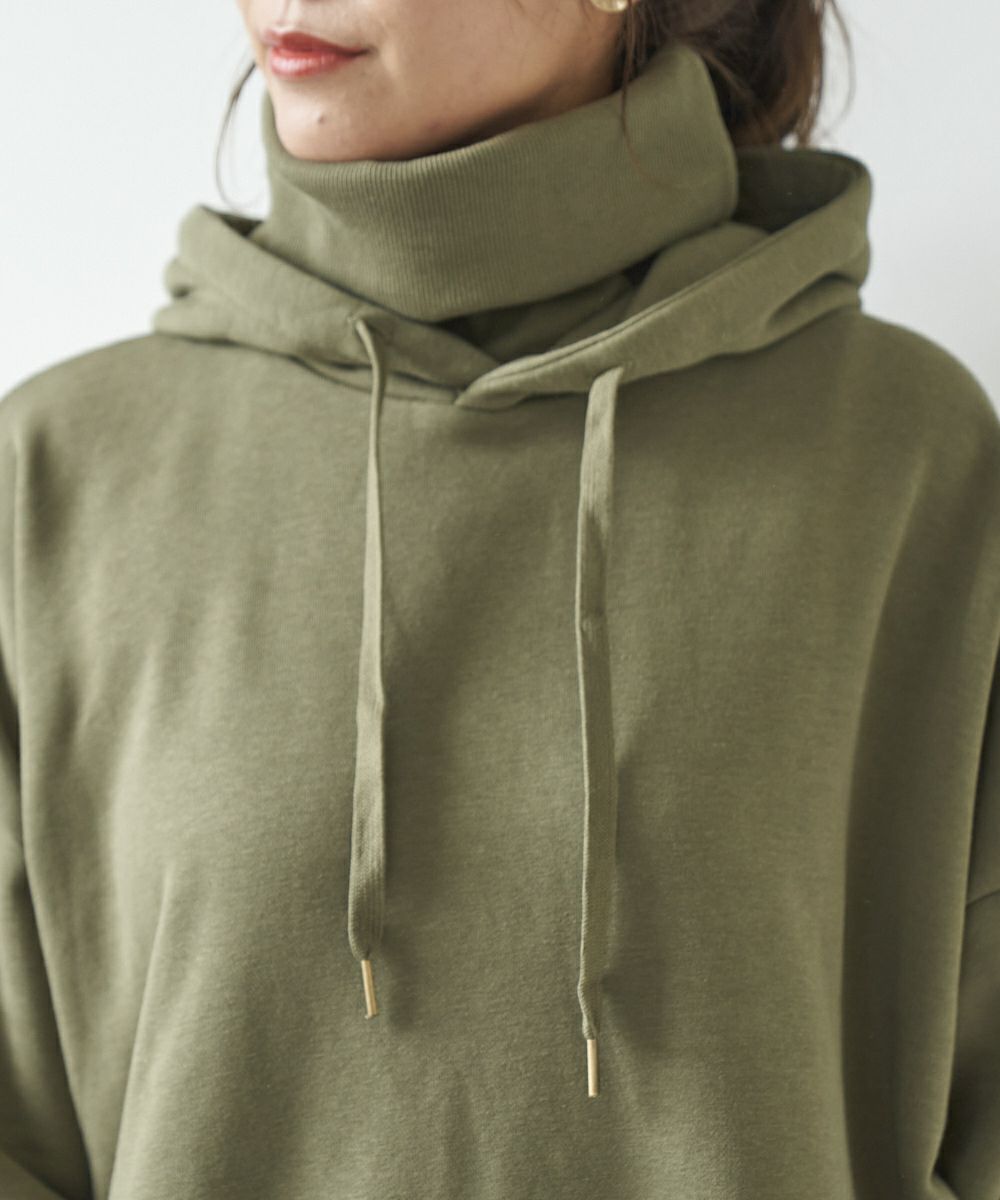 ネックウォーマー付裏毛パーカープルオーバー。しっかりリブがシルエットをより可愛く見せます。