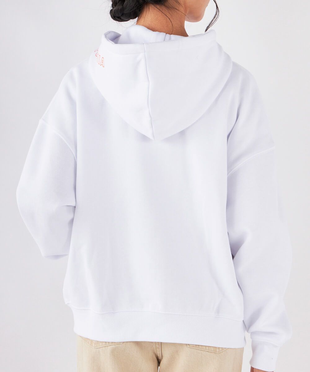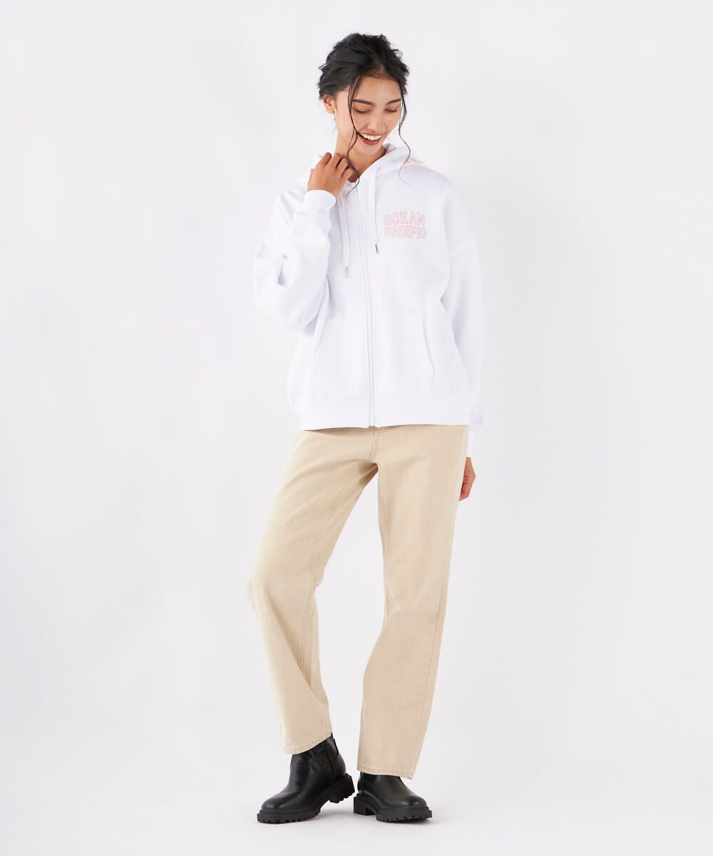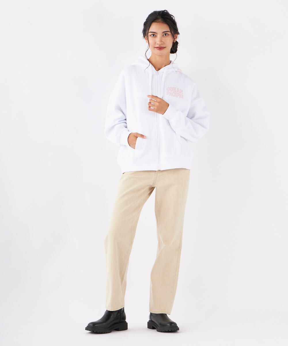 グラフィックプリントを胸元とフード部分にあしらったフルジップパーカーです。ジップアイテムなので脱ぎ着しやすく、オフィスや家の中でも温度調節に使いやすいパーカーです。フードが大きめで可愛く首周りもあったか!飽きの来ないデザインで、毎日のコーディネートにも大活躍。同素材でセットアップもおすすめ。