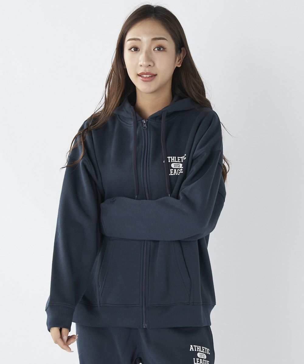 レディース 胸ワンポイント 裏起毛ジップパーカー