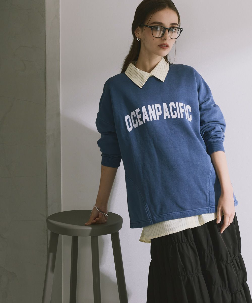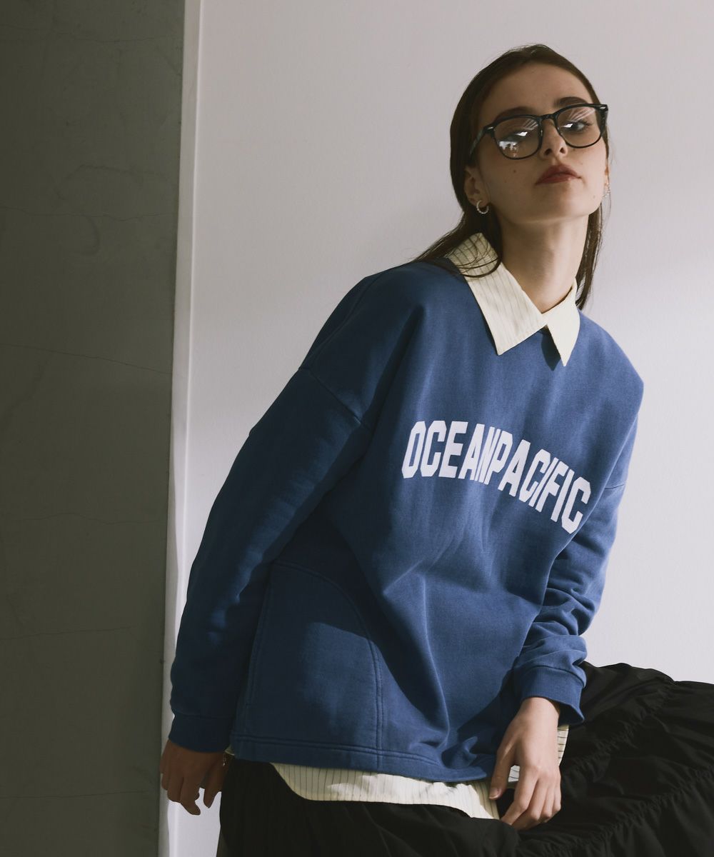 クラシックなカレッジロゴが印象的な「OCEAN PACIFIC」レディーススウェット!