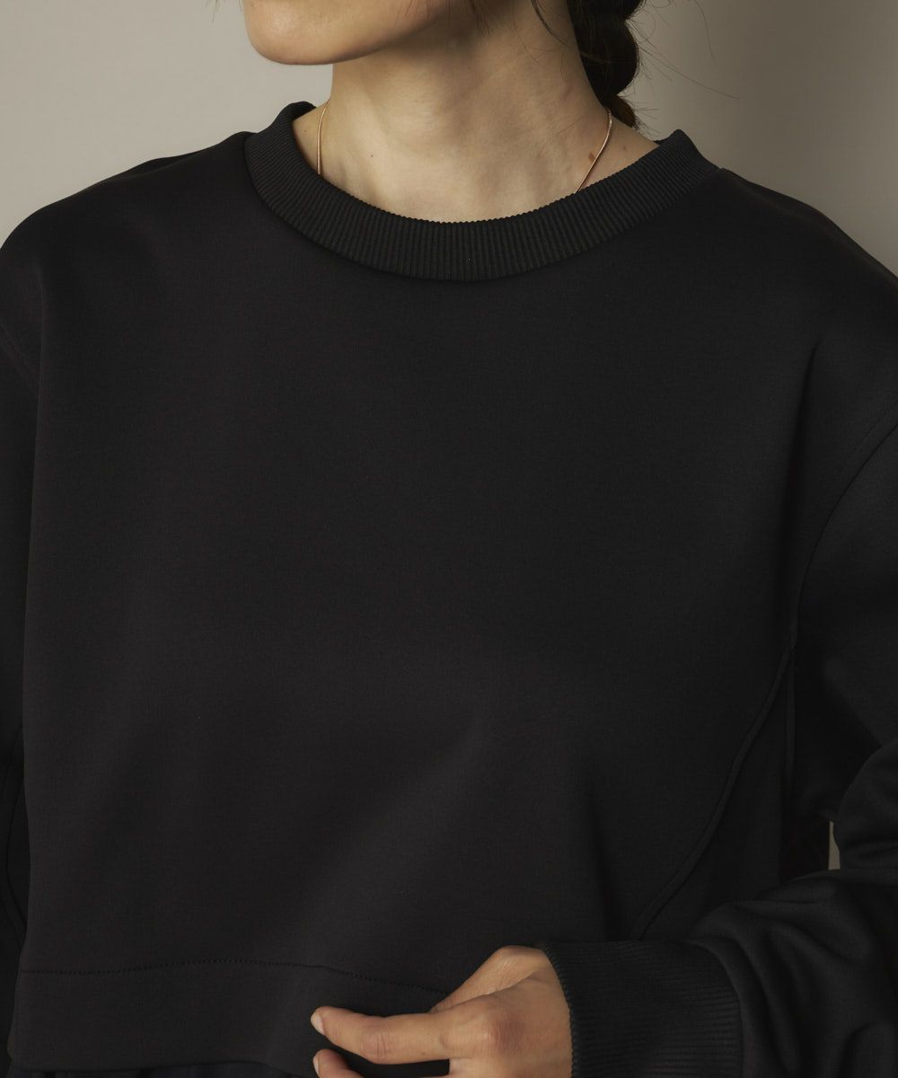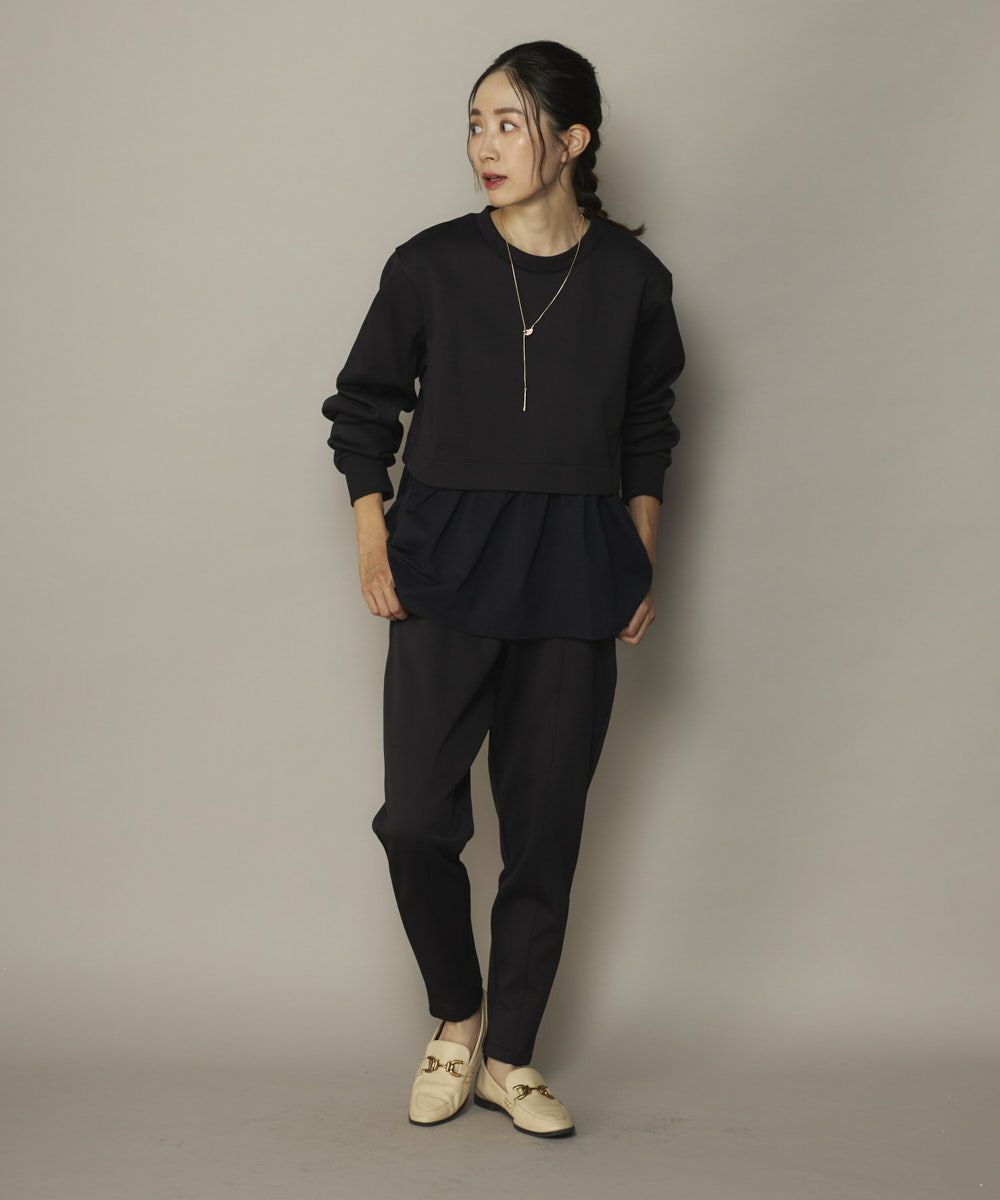 軽量で保温性があり、UVカット付き、伸縮性があり、シワになりにくくお家でのお手入れも簡単。ダンボールニットと布帛カットソーの異素材ドッキングトップスです。1枚でレイヤードスタイルが完成する、デザイン性と着回し力を兼ね備えた優秀アイテムです。異素材ミックスで洒落感UP!ドッキングデザイントップス。程よいハリと立体感が特徴のダンボールニットに、布帛素材をドッキング。