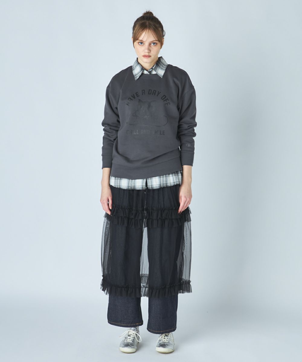 柔らかくふんわり裏起毛で保温性◎軽量でもしっかり暖かく、ゆったりシルエットでストレスフリーな着心地ポップなグラフィックとユルいメッセージが魅力の、着心地も見た目も抜群な1枚です。【HAVEADAYOFF】気取らず、リラックスして過ごす日にぴったりな“お休みの日の相棒スウェット”。スケートボードに乗った猫のグラフィックが目を引く、ポップでどこかレトロなデザイン。