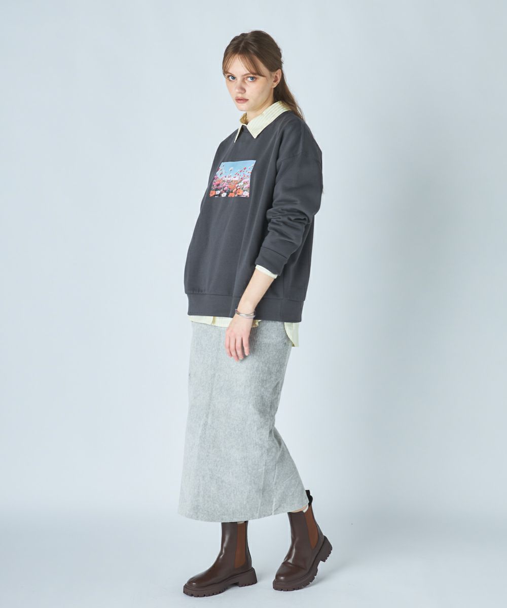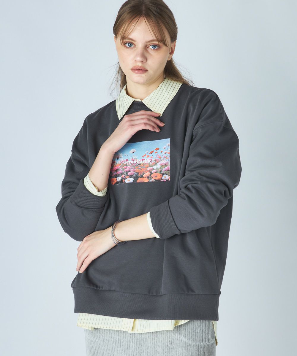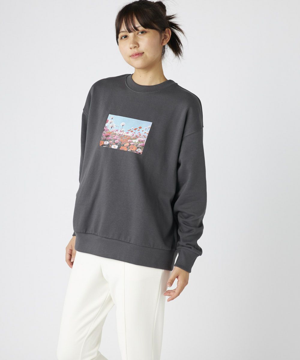 柔らかくふんわり裏起毛で保温性◎軽量でもしっかり暖かく、ゆったりシルエットでストレスフリーな着心地鮮やかな花畑のフォトが目を引く、アート感たっぷりのスウェットです。自然の美しさと心地よさをそのまま切り取ったような、1枚で存在感のあるアイテム。ふわふわの裏起毛で、寒い季節もぬくもりキープ。チクチク感のない柔らかな肌触りで、リラックスして着られる。