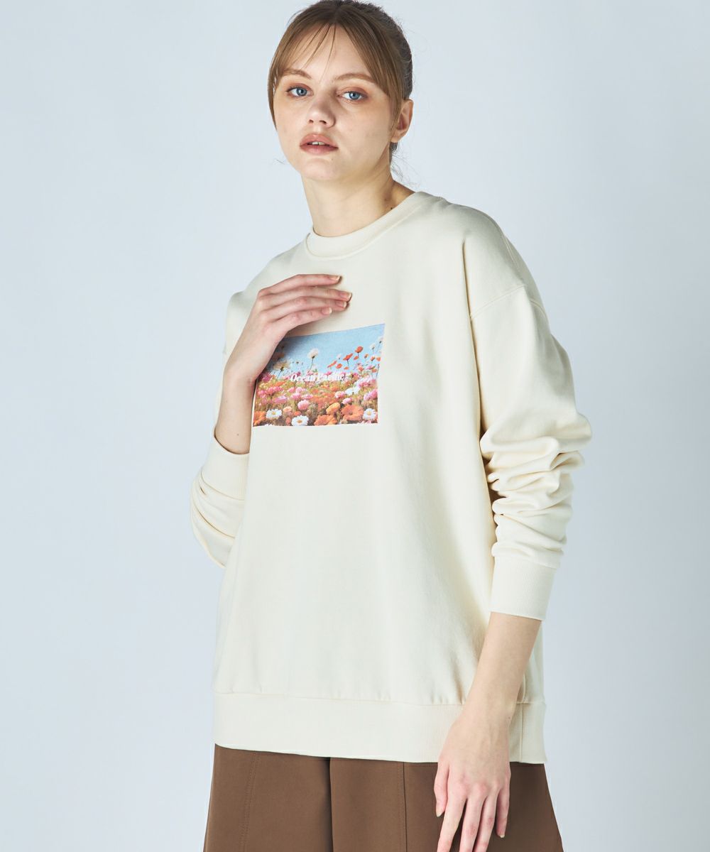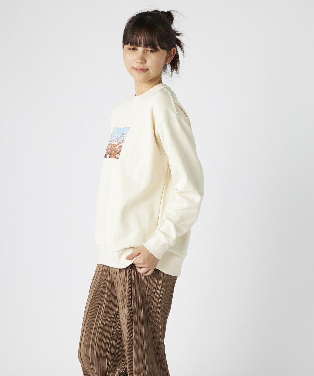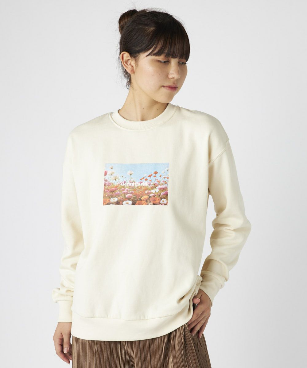 柔らかくふんわり裏起毛で保温性◎軽量でもしっかり暖かく、ゆったりシルエットでストレスフリーな着心地鮮やかな花畑のフォトが目を引く、アート感たっぷりのスウェットです。自然の美しさと心地よさをそのまま切り取ったような、1枚で存在感のあるアイテム。ふわふわの裏起毛で、寒い季節もぬくもりキープ。チクチク感のない柔らかな肌触りで、リラックスして着られる。