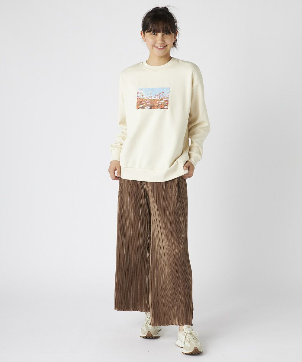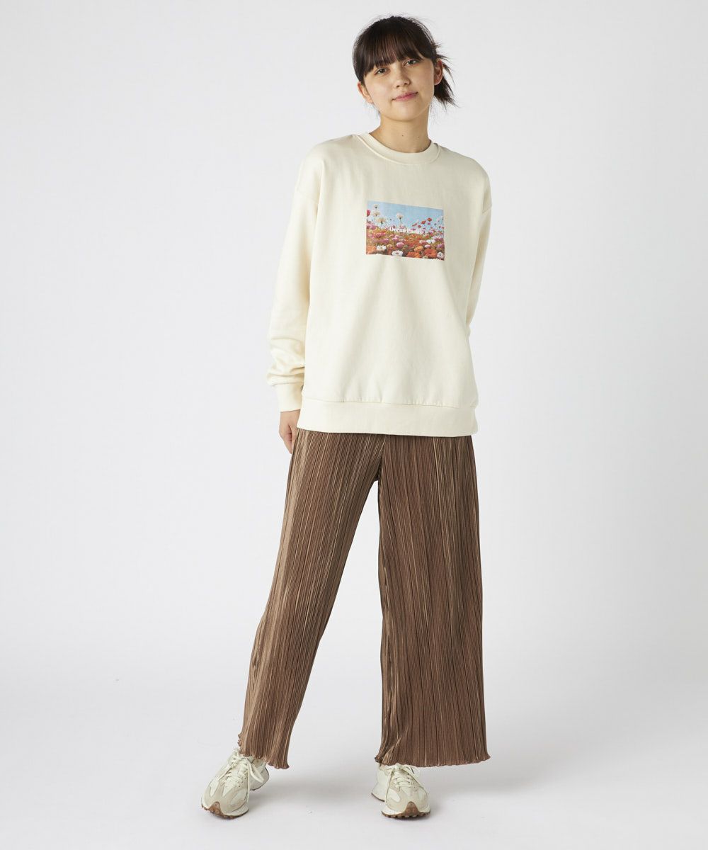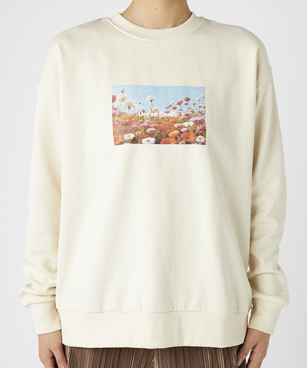 柔らかくふんわり裏起毛で保温性◎軽量でもしっかり暖かく、ゆったりシルエットでストレスフリーな着心地鮮やかな花畑のフォトが目を引く、アート感たっぷりのスウェットです。自然の美しさと心地よさをそのまま切り取ったような、1枚で存在感のあるアイテム。ふわふわの裏起毛で、寒い季節もぬくもりキープ。チクチク感のない柔らかな肌触りで、リラックスして着られる。