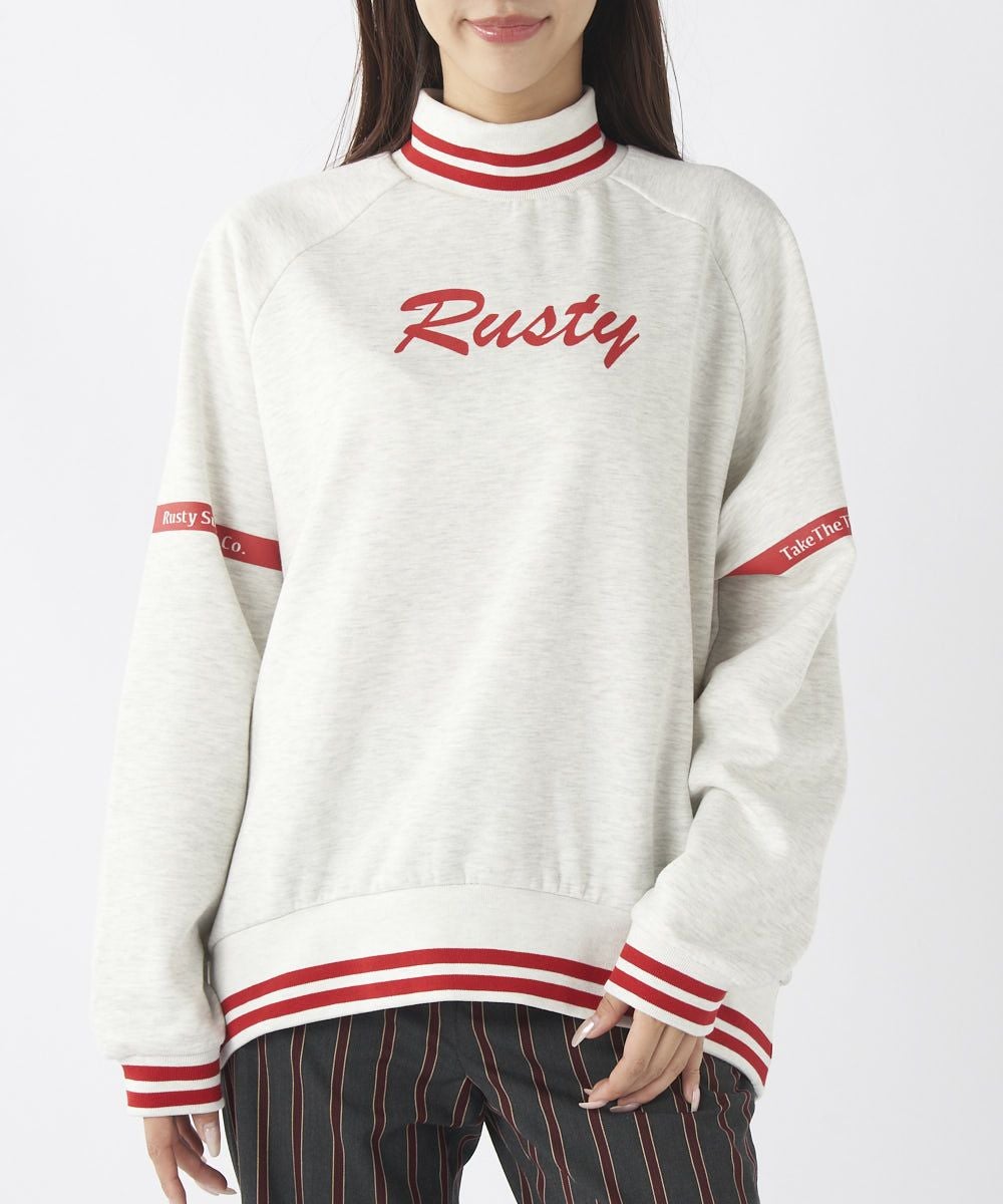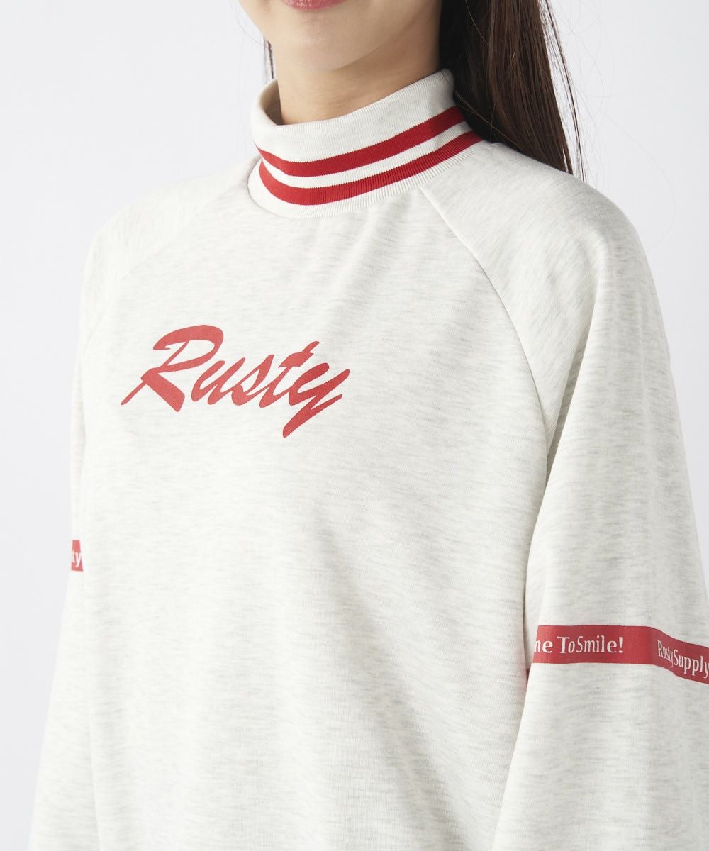 ライン入りリブ素材のハイネックが特徴の裏起毛スウェット。メンズライクなシルエットでダボっと大きめなデザインです!袖のテープロゴもポイントで、シンプルなデザインなので長く大活躍してくれるスウェットです!