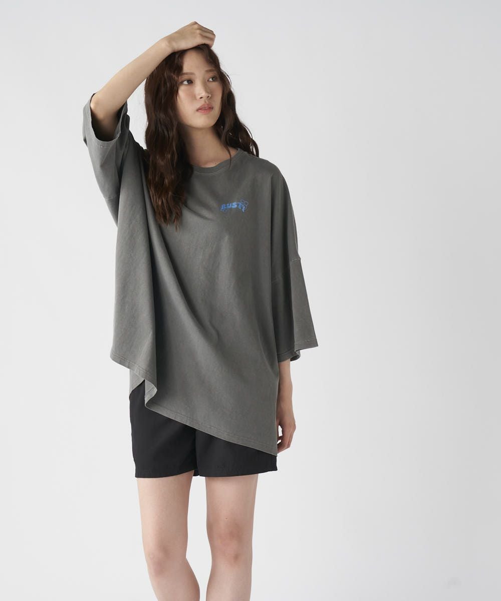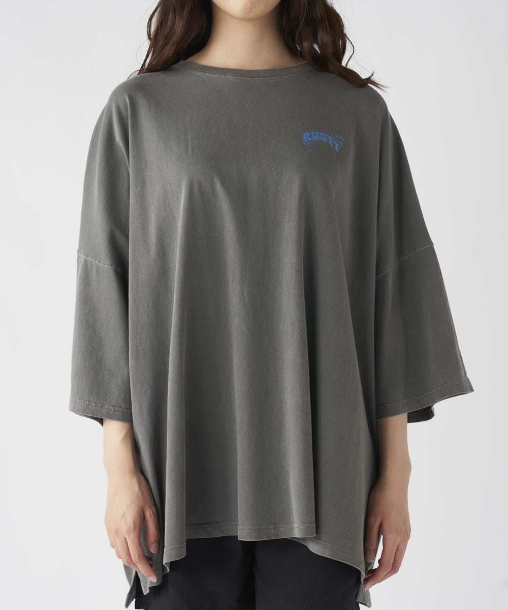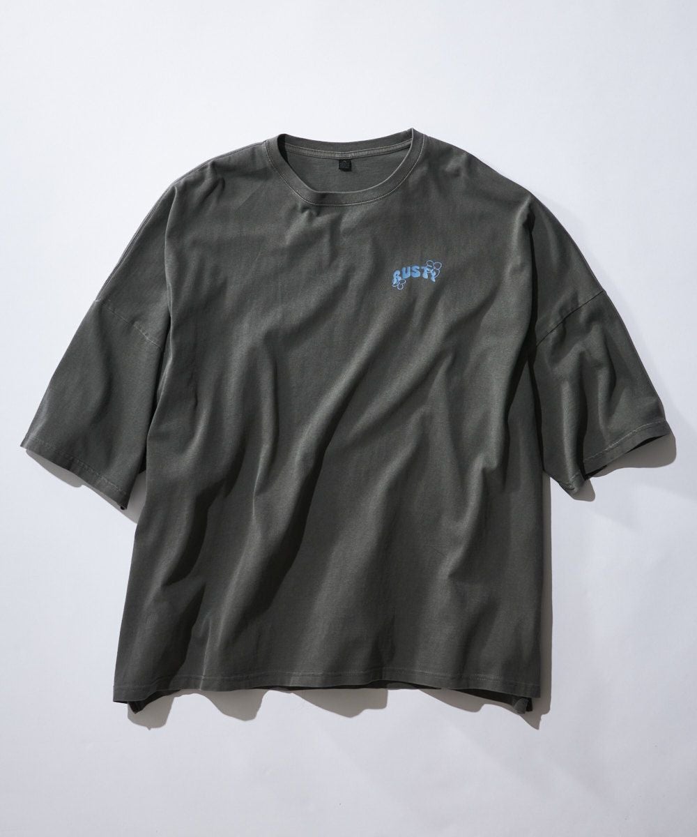 製品染めならではのムラ感が味のあるビッグTシャツ。手書き風のお花プリントがアクセントになっていて、甘すぎずちょうどいいカジュアル感。ゆるっとしたサイズ感で、デイリーにぴったりな1枚です。