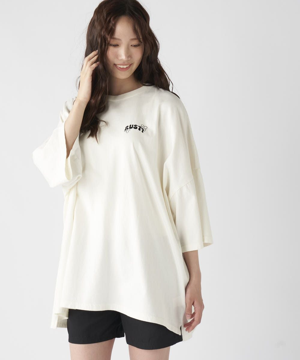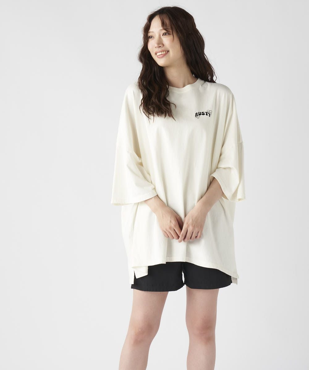 製品染めならではのムラ感が味のあるビッグTシャツ。手書き風のお花プリントがアクセントになっていて、甘すぎずちょうどいいカジュアル感。ゆるっとしたサイズ感で、デイリーにぴったりな1枚です。