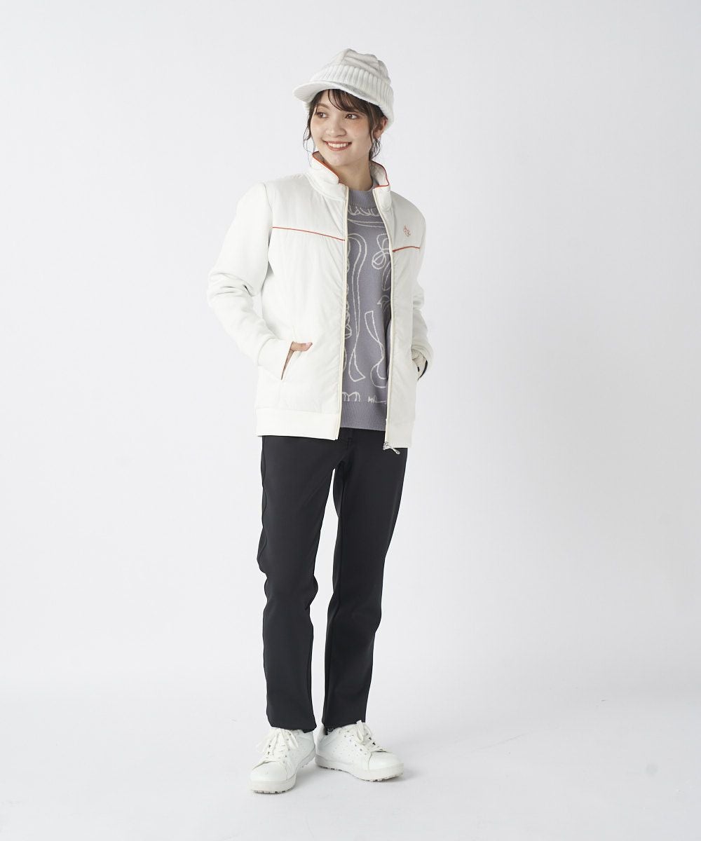 袖と肩には伸縮性の高いダンボールニット素材、身頃には軽量中綿を採用。