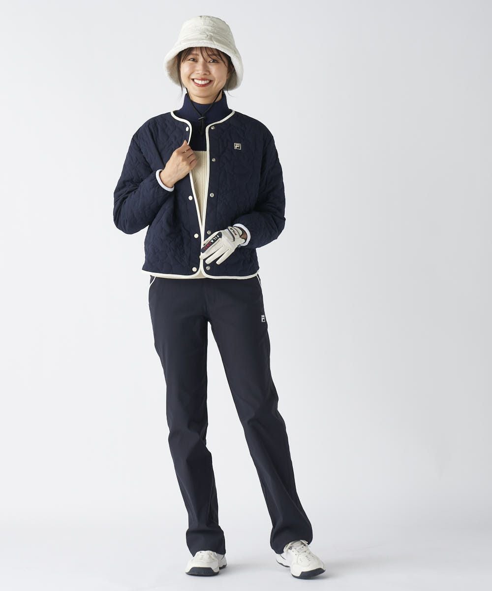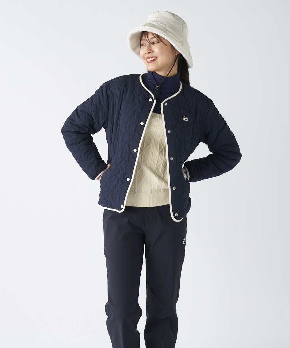 高周波キルトによって表現されたタイポロゴ柄が、シンプルながらもFILAらしい遊び心と都会的なセンスを醸し出します。スポーティすぎない上品なデザインは、大人の女性のアクティブスタイルに最適。コンパクトかつ計算されたシルエットは、着膨れしにくく、スタイルアップ効果を発揮し、洗練された印象を与えます。