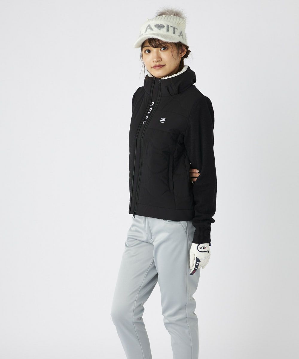 スポーティなタフタと上品なニットの異素材切替が、都会的で洗練された印象を与えるFILAらしいデザインです。計算されたコンパクトなシルエットは着膨れせず、身体のラインをスマートに見せます。ミニマルなディテールと素材のコントラストが、大人のアクティブスタイルにクールなアクセントを添えます。