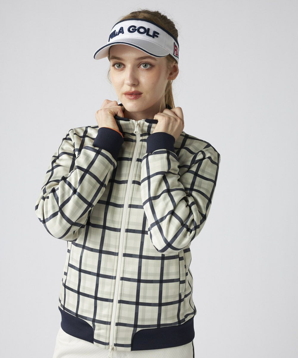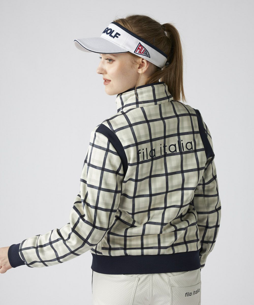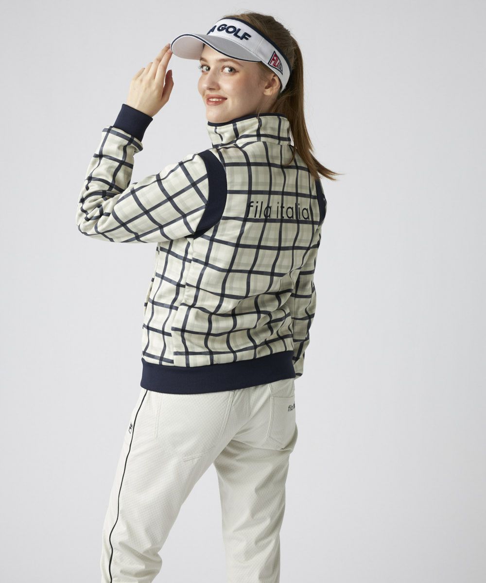 トラッドなチェック柄にキルト加工を施し、FILAらしい都会的で上品なスタイルに仕上げました。柄物ながらも落ち着いたトーンで、洗練された大人のスポーティスタイルを演出します。袖付け部分の切替と、計算されたシャープなシルエットが、着用時の動きの美しさを引き立て、コース上で自信を持てる一着です。
