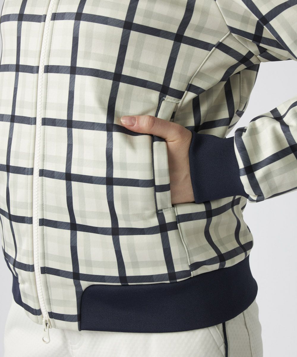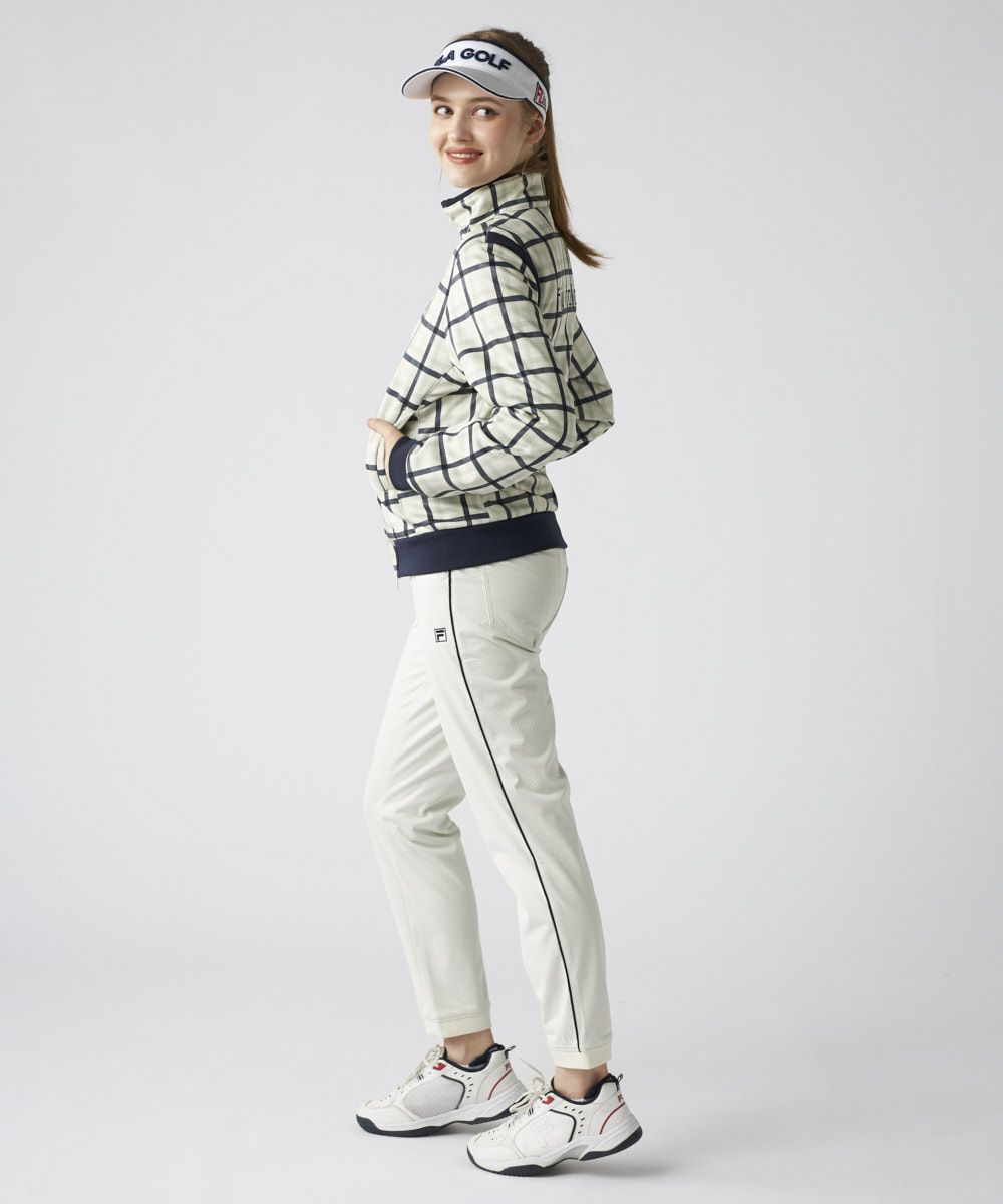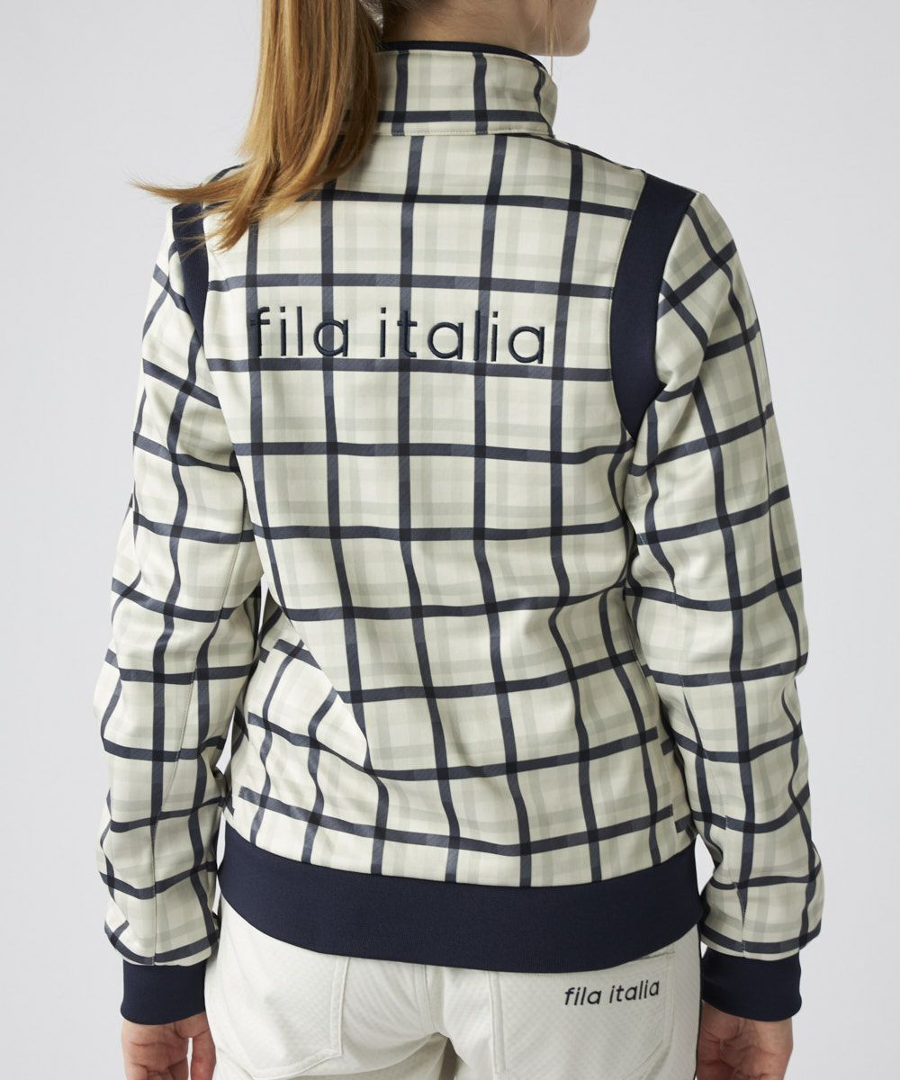 トラッドなチェック柄にキルト加工を施し、FILAらしい都会的で上品なスタイルに仕上げました。柄物ながらも落ち着いたトーンで、洗練された大人のスポーティスタイルを演出します。袖付け部分の切替と、計算されたシャープなシルエットが、着用時の動きの美しさを引き立て、コース上で自信を持てる一着です。