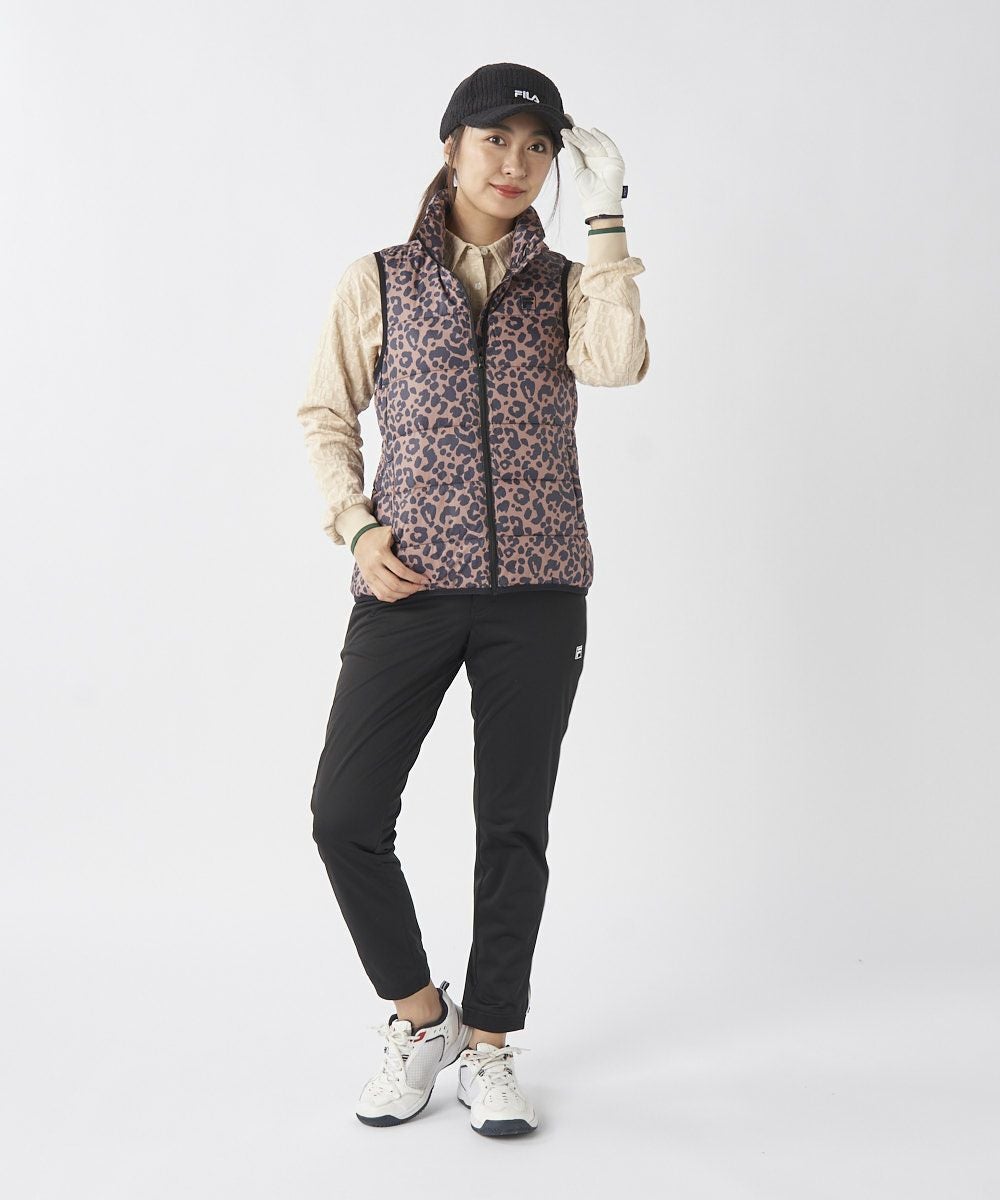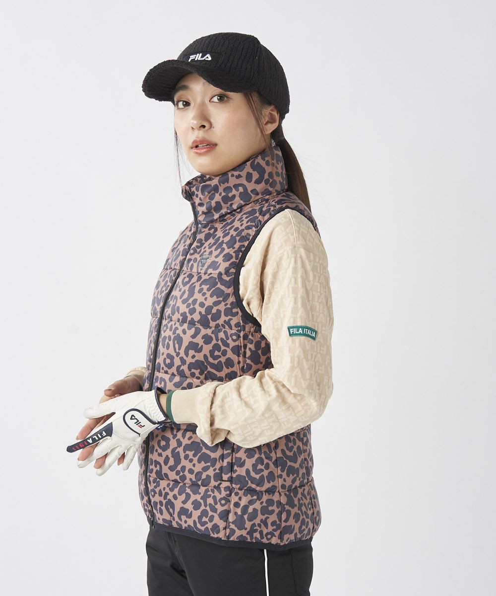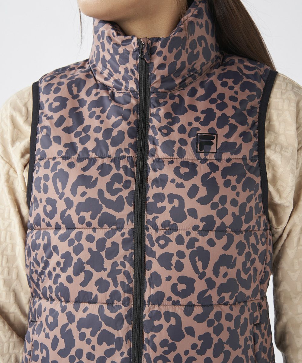 レディース レオパード柄ライトダウンベスト
