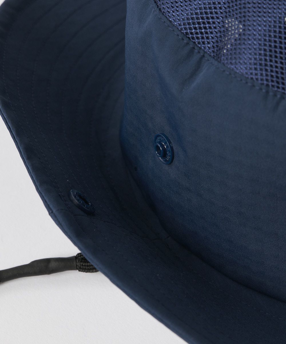 体感-15℃の遮熱性に優れたアルミ蒸着生地を裏地に使用した、熱中症対策のハット。暴対部分には通気性をもたらすメッシュパネルを配備。