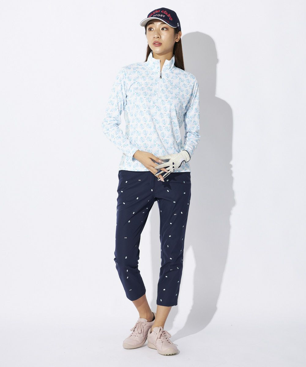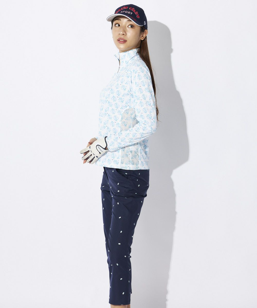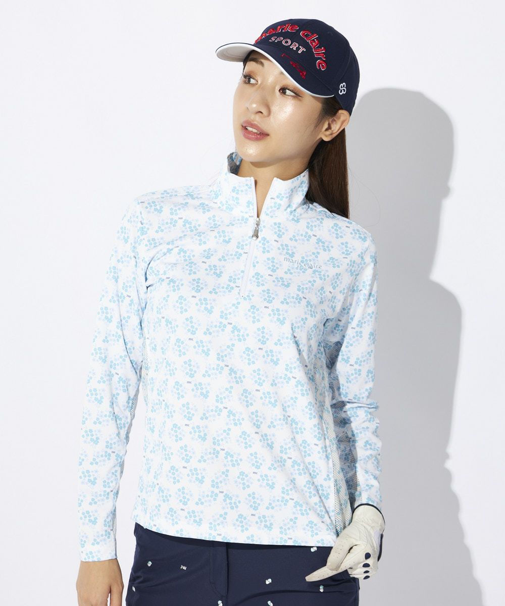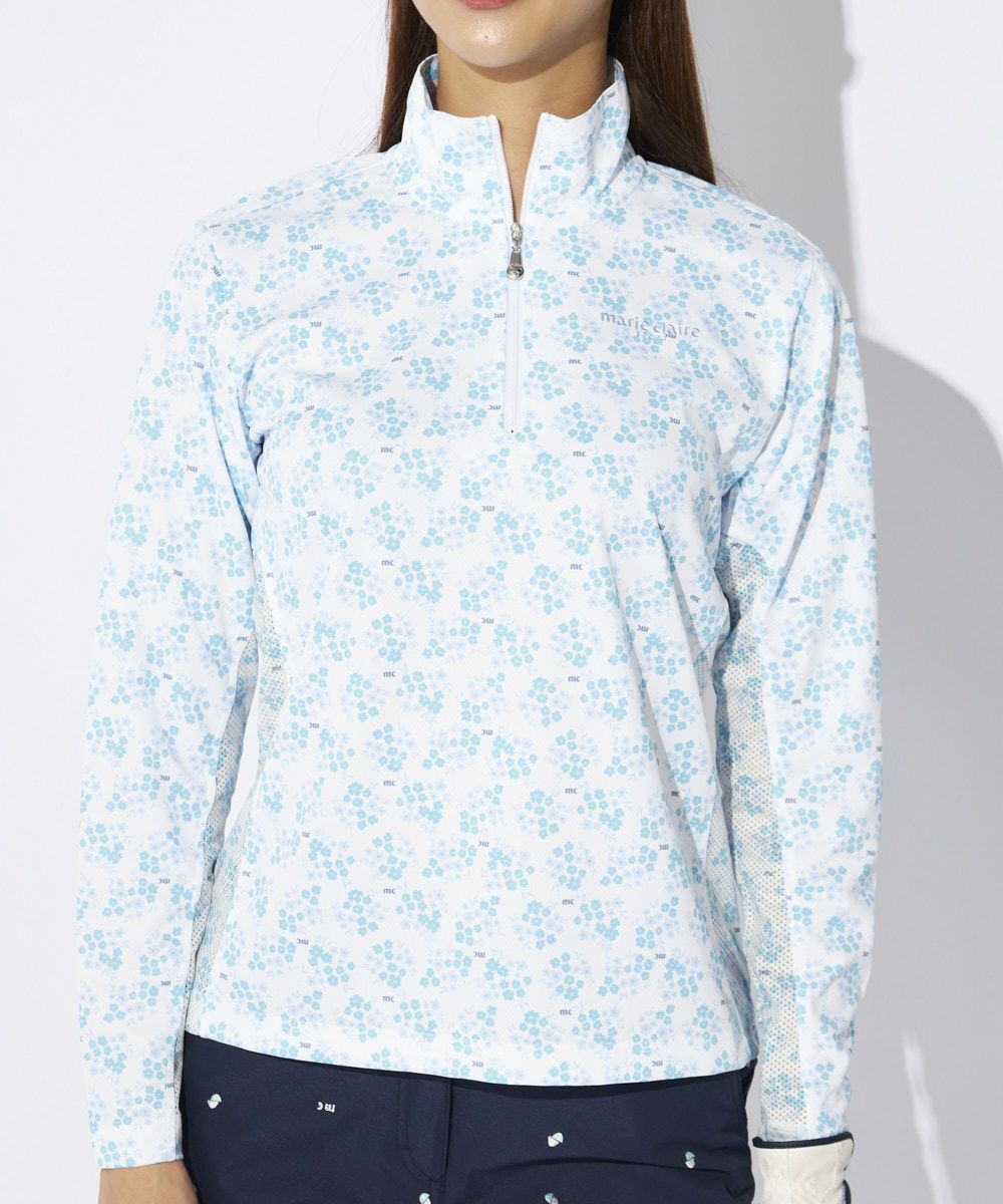 デザインはさりげない小花柄が上品なハーフジップシャツです。無地のパンツやスカートとはもちろん、柄アイテムと合わせたコーディネートもおしゃれです!ハーフジップで、首もとまで隠れるので、首周りの日焼け対策もばっちりできます。
