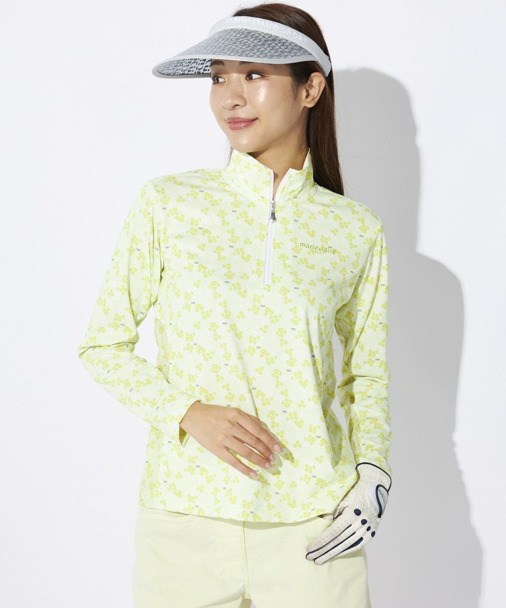 デザインはさりげない小花柄が上品なハーフジップシャツです。無地のパンツやスカートとはもちろん、柄アイテムと合わせたコーディネートもおしゃれです!ハーフジップで、首もとまで隠れるので、首周りの日焼け対策もばっちりできます。