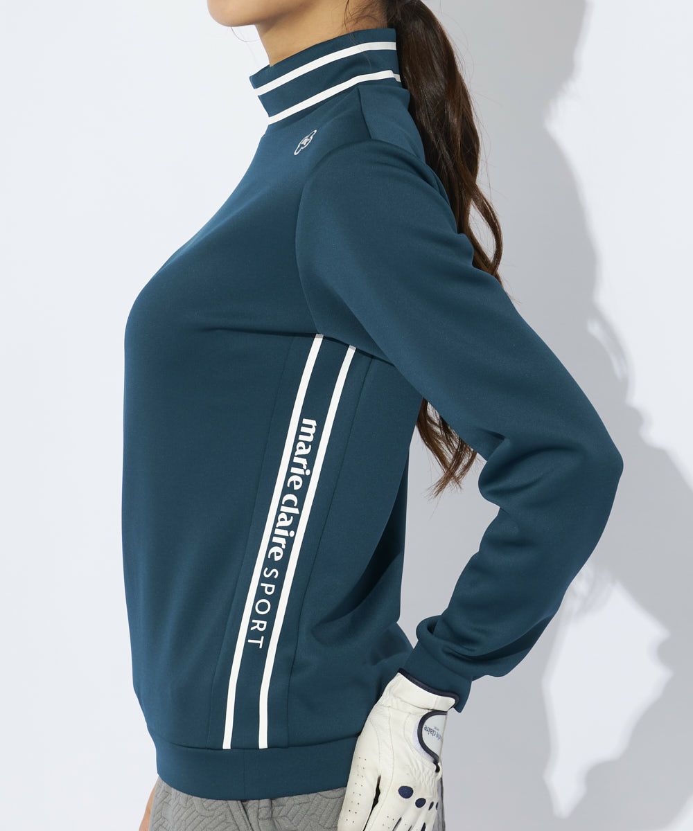 薄手のダンボールニットの長袖モックネックシャツ。身体のラインを拾いすぎないシルエットでスポーティーな印象に♪ライン使いでシャープでCOOL雰囲気に◎