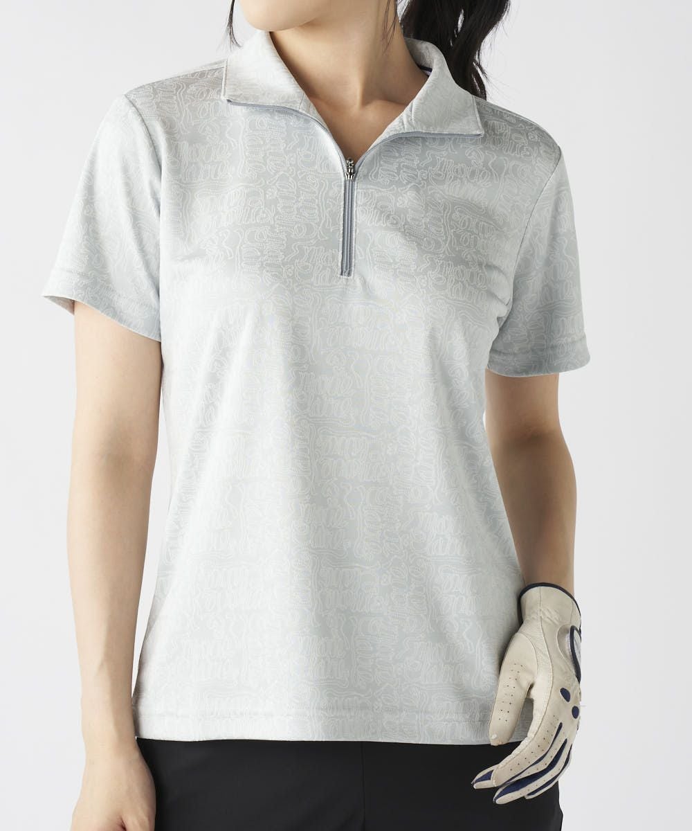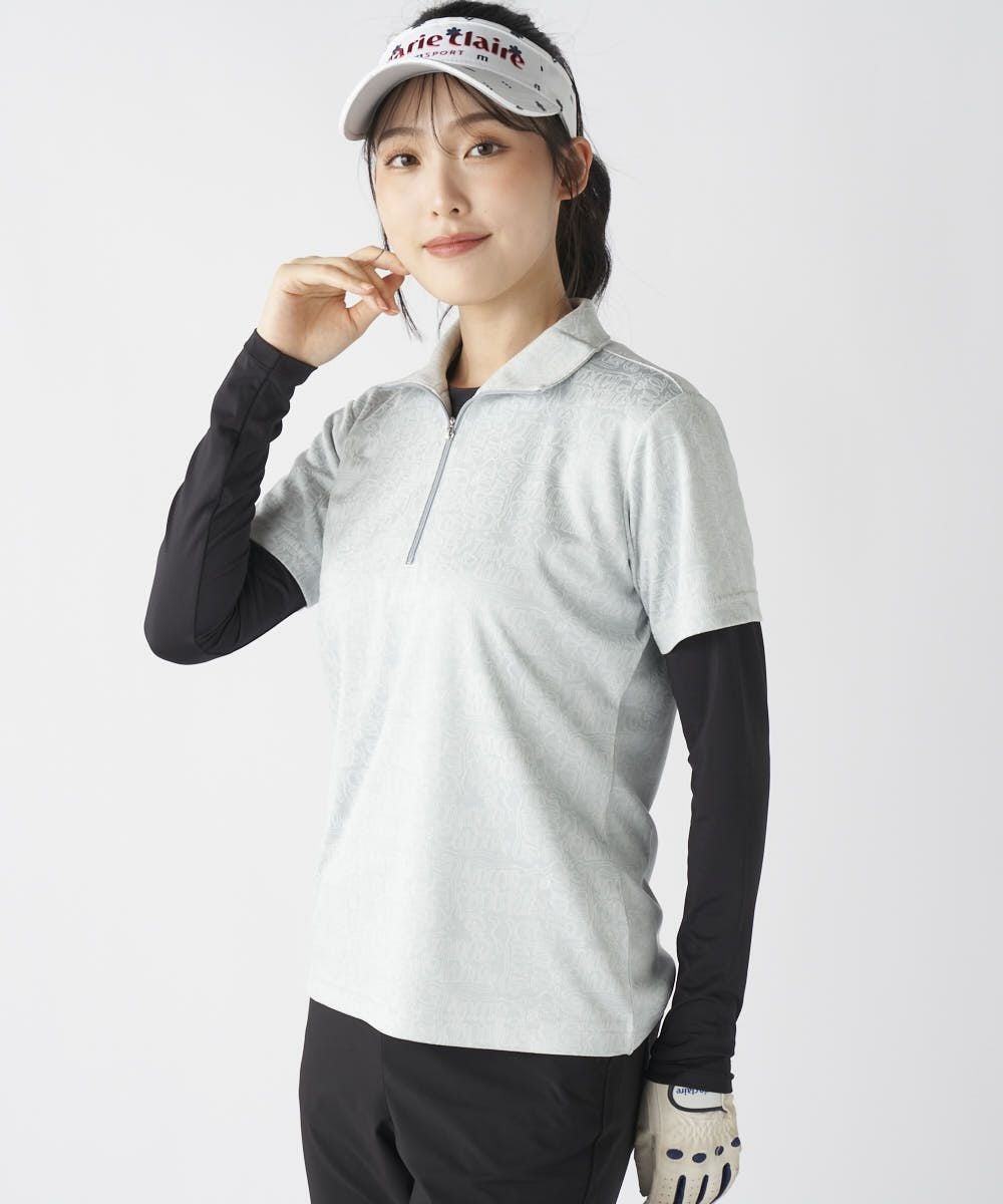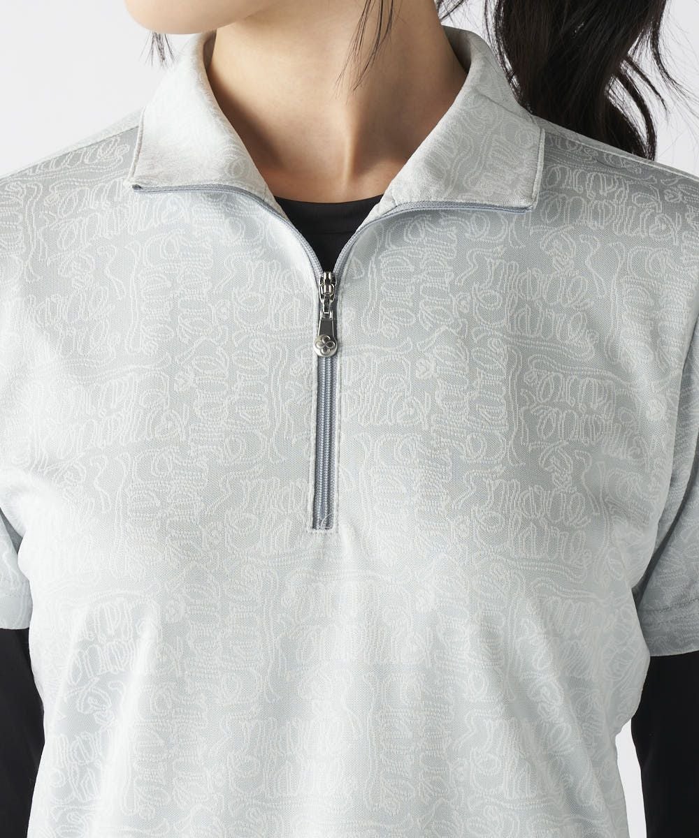 大胆なリボンロゴ柄が印象的なジップシャツ。