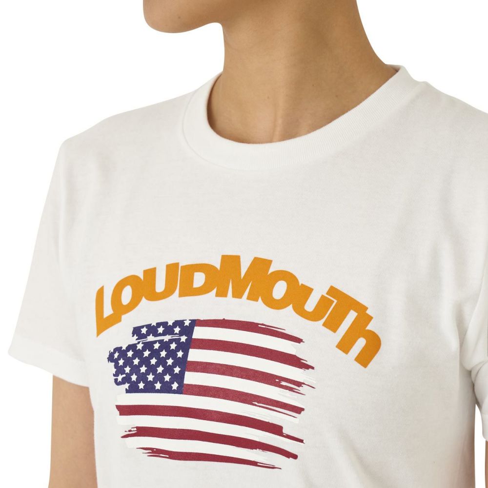 アメリカ国旗とLOUDMOUTHロコ゛ を組み合わせたカシ゛ュアルTシャツ