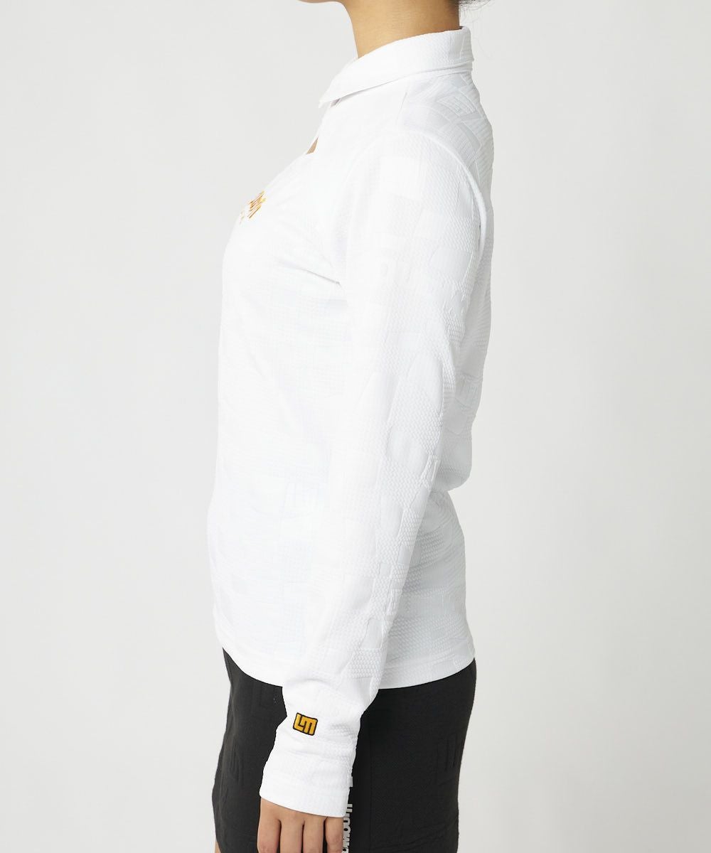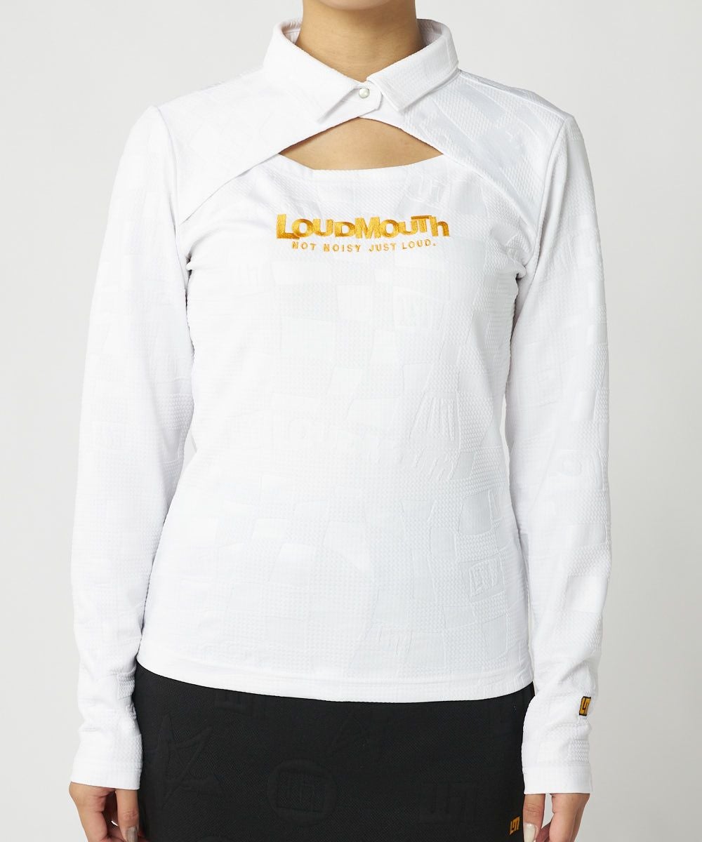 レディース エンボスロゴ 胸あきデザイン長袖シャツ ホワイト