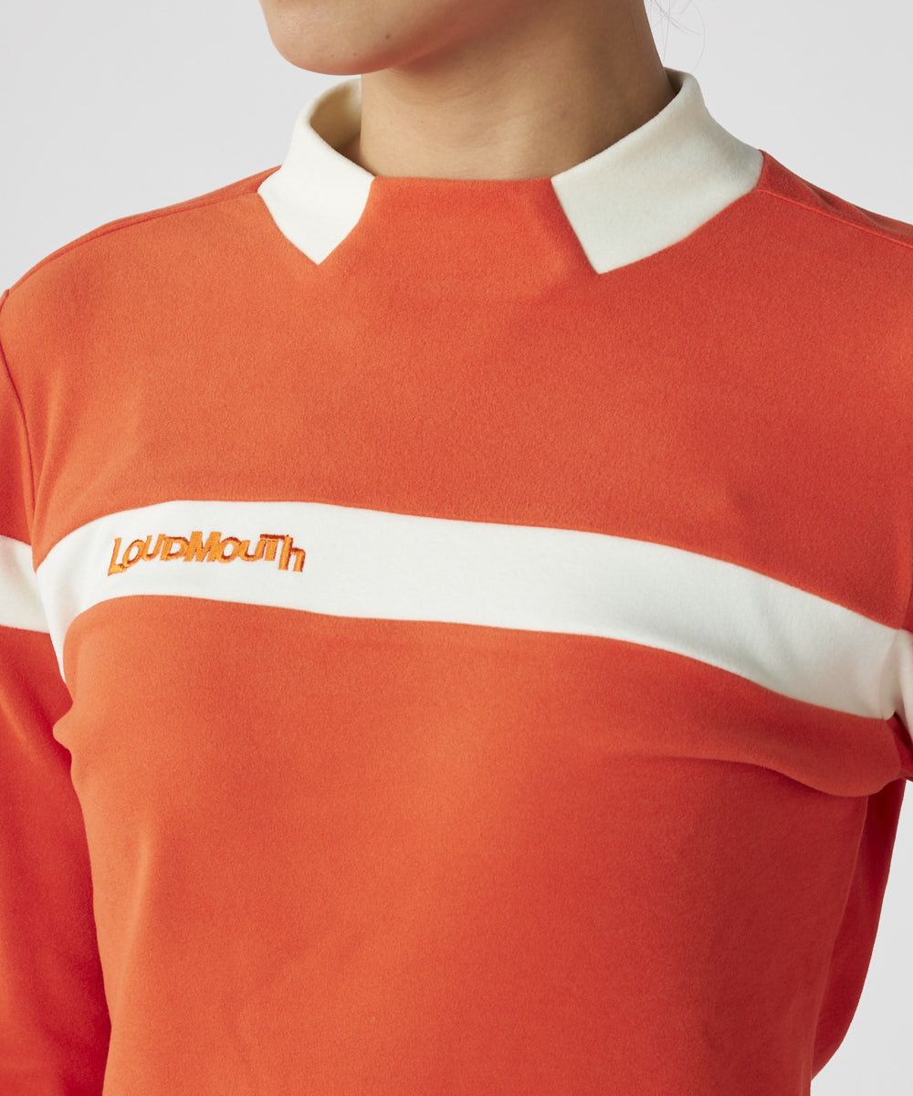 レディース 両面起毛スムース 長袖モックネックシャツ オレンジ