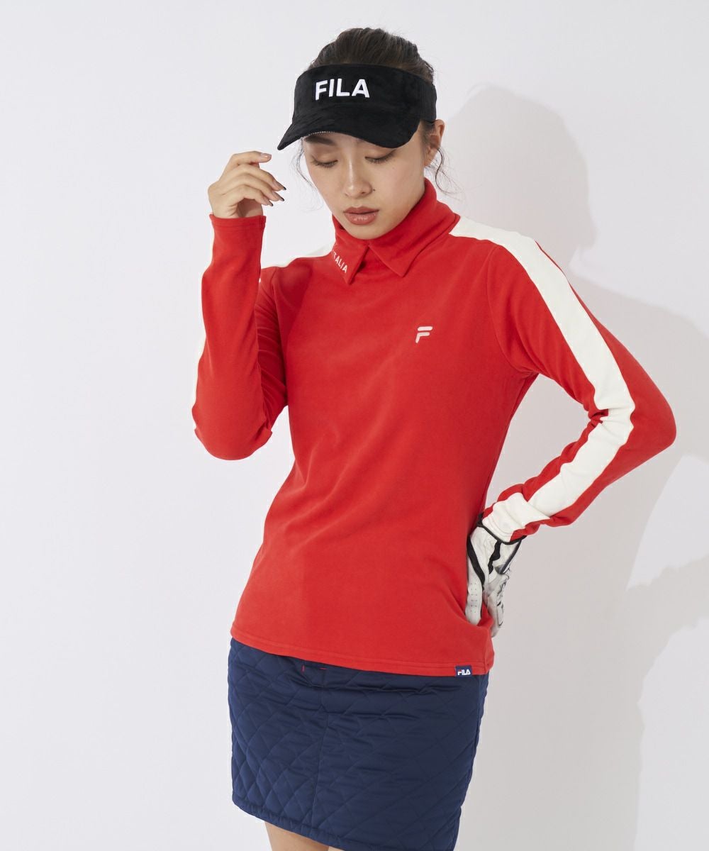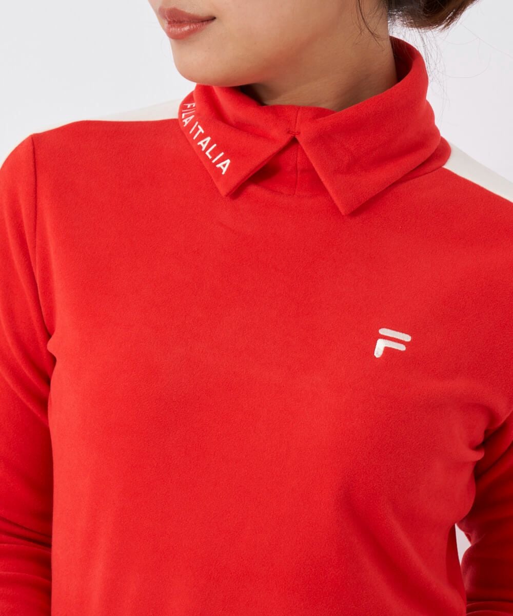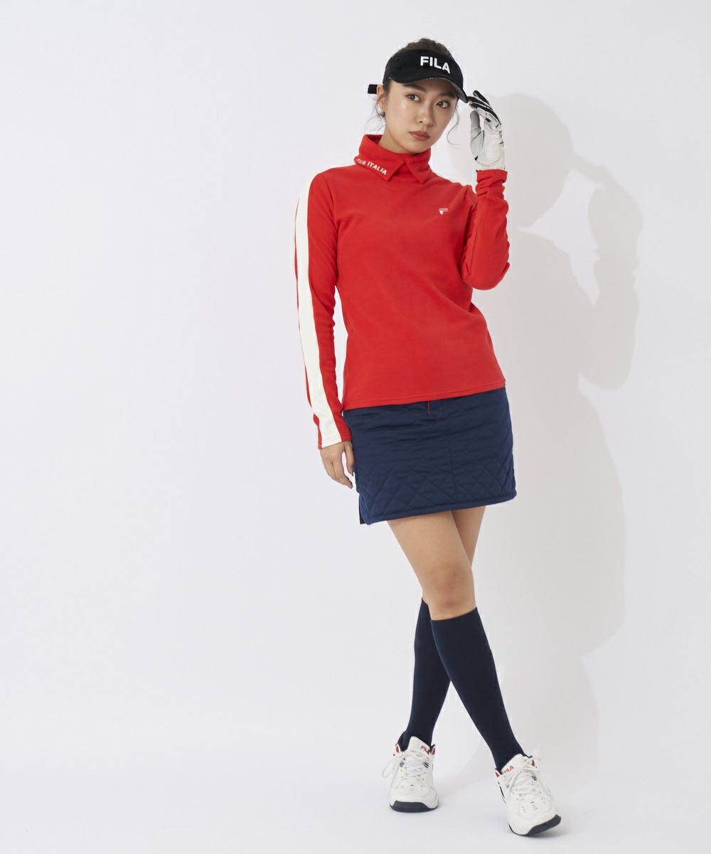 袖のライン切替がアクセントになっており、スポーティーなイメージを取り入れた暖かタートルネック。