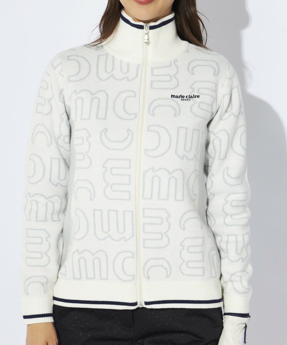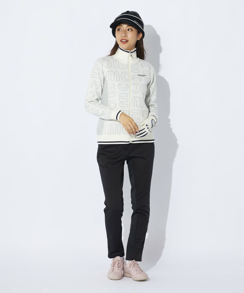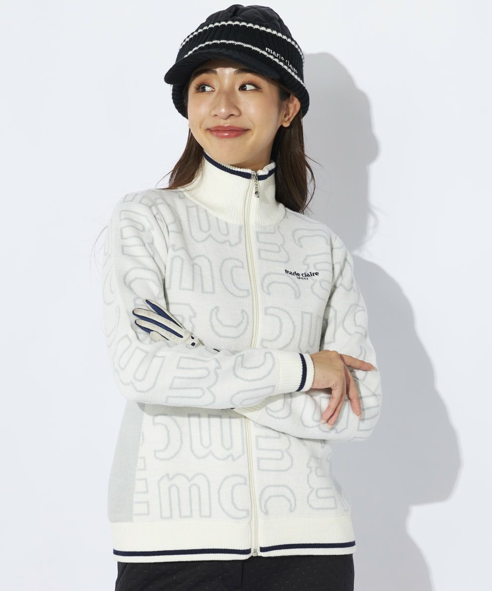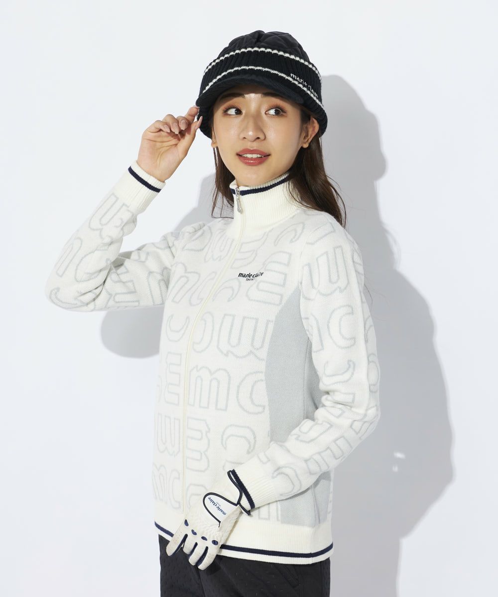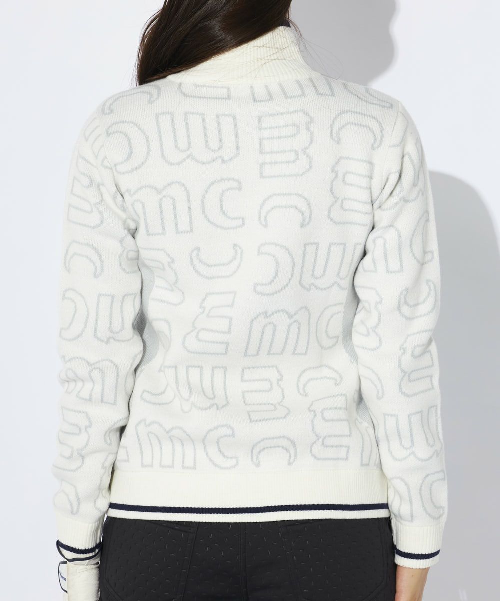 柔らかな肌触りのウール混ニット。大胆な大きめロゴがスタイリッシュ♪便利なハーフジップ衿はゴルフにはもちろん普段のカジュアルウェアとしても活躍してくれます◎