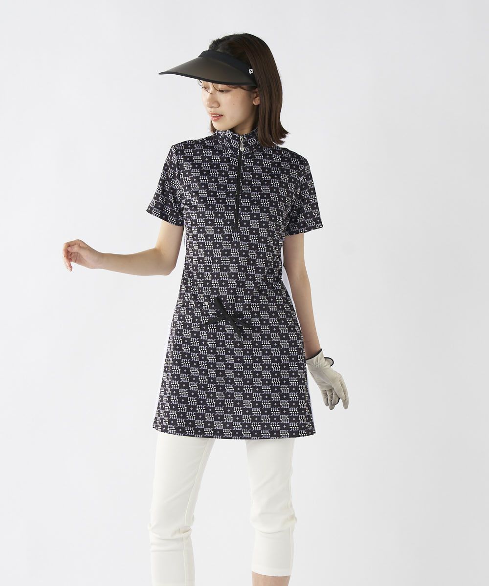 レディース モノグラム柄ハーフジップチュニック| 吸汗速乾・UV・吸湿涼感・接触冷感