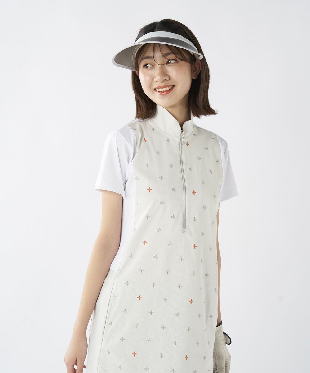 レディース 切替刺繍コードレーン素材ワンピース | 吸汗速乾・UVカット・ストレッチ