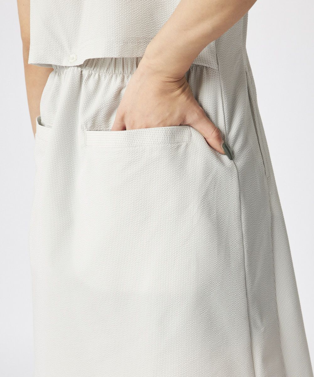 大きく開いた背中が特徴のバックコンシャスなワンピース。背中からめいいっぱい風を感じれる涼しいワンピースです。背中は風通しをよく、開いており、ボタンで留めれるデザインなので、肌見せはなく、涼しく着用いただけます。素材も夏にぴったりの上品なサッカー素材で涼しさを演出します。