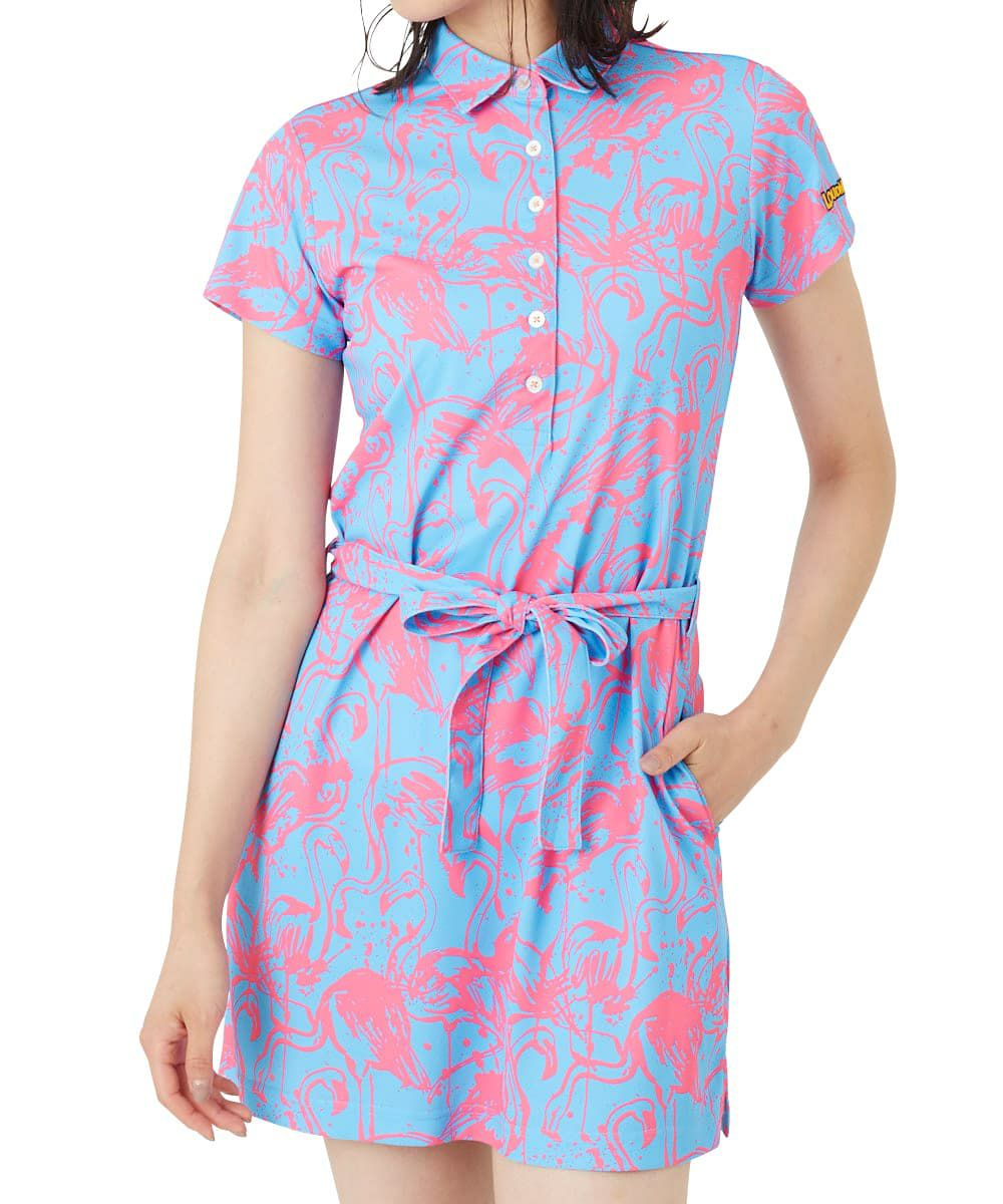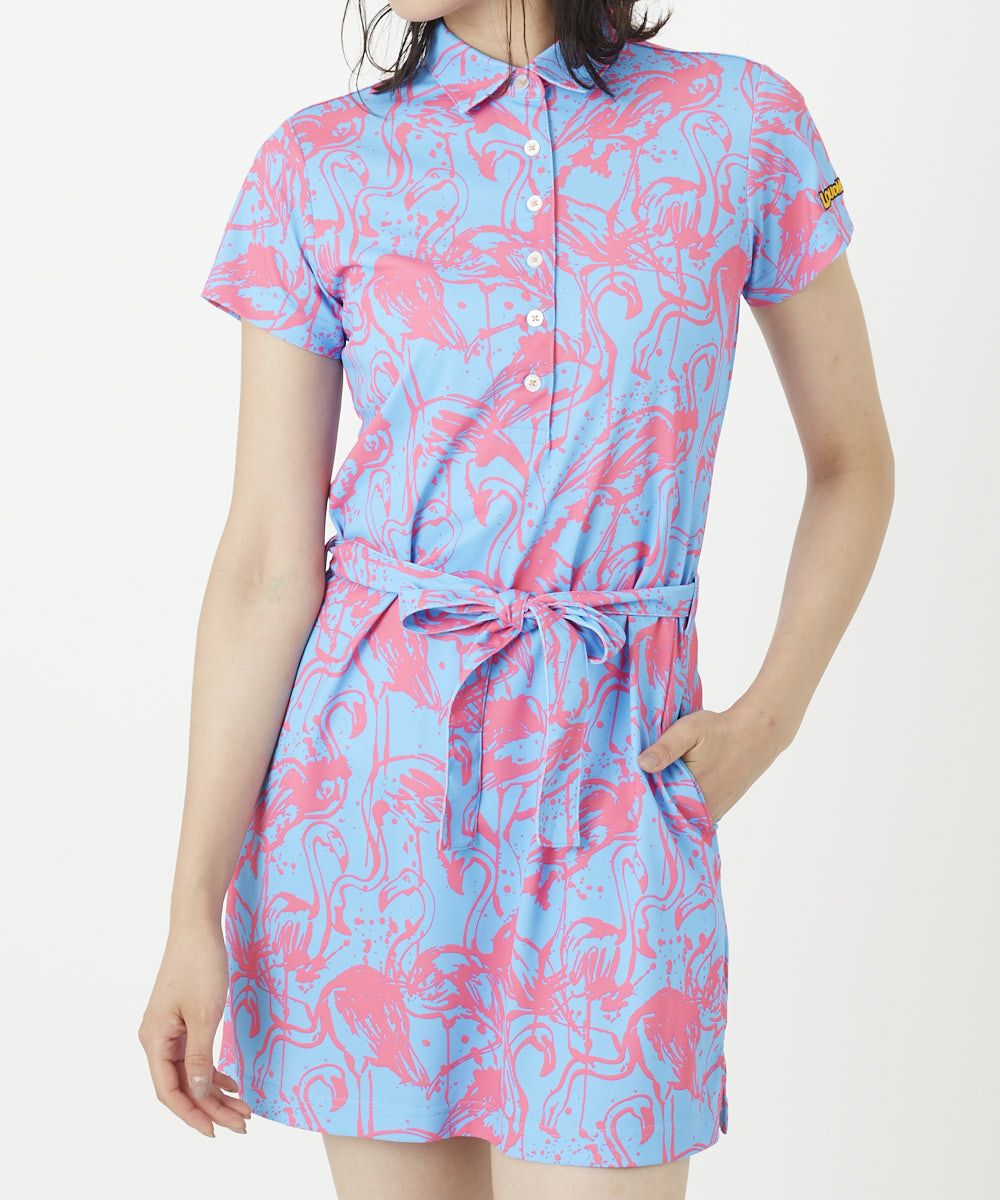 サラッとした肌触りの ポリエステル素材を使用した柄ワンピース。今シーズンのインパクトのある柄を展開。