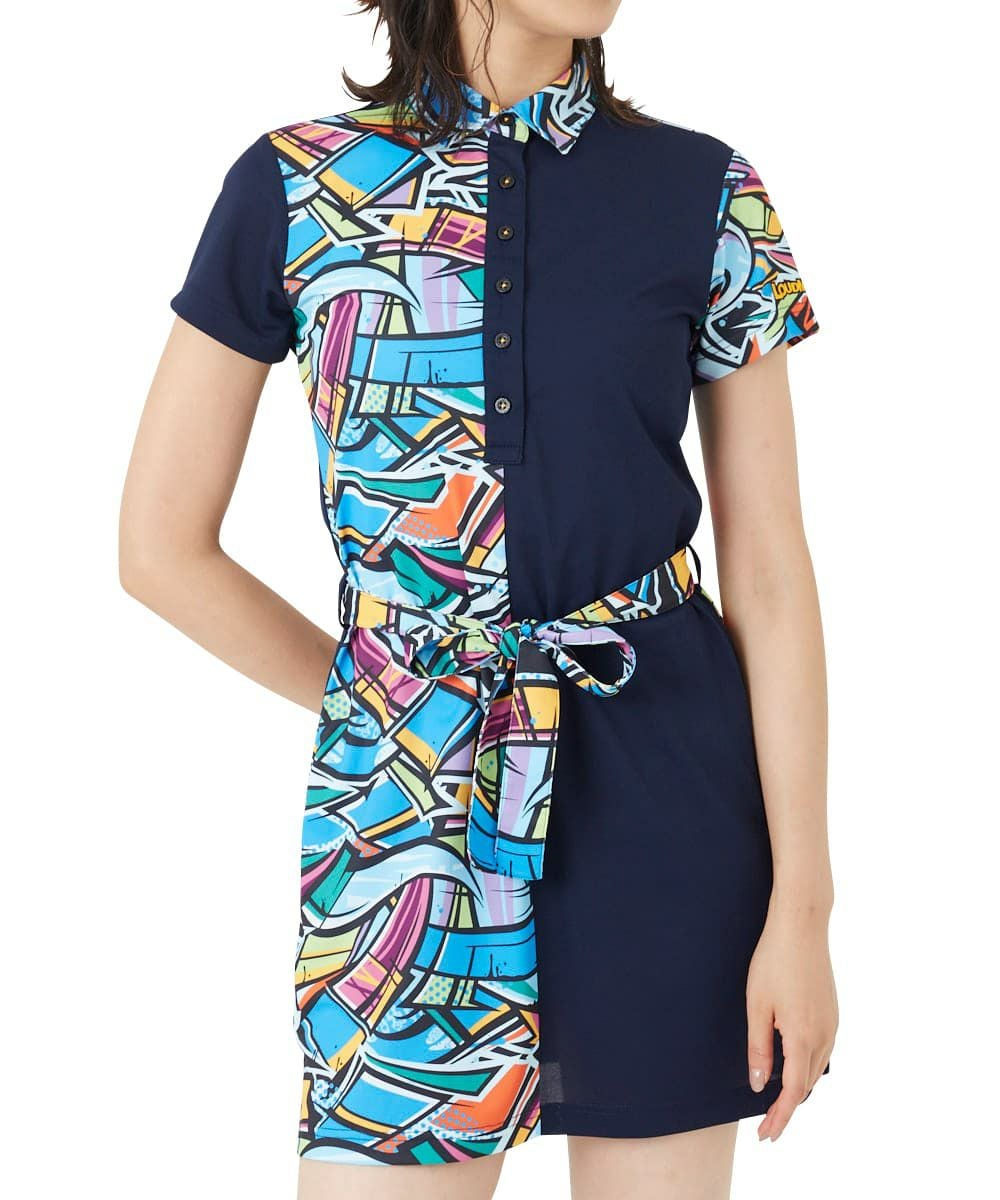 レディース 切替ワンピース ウォールアート