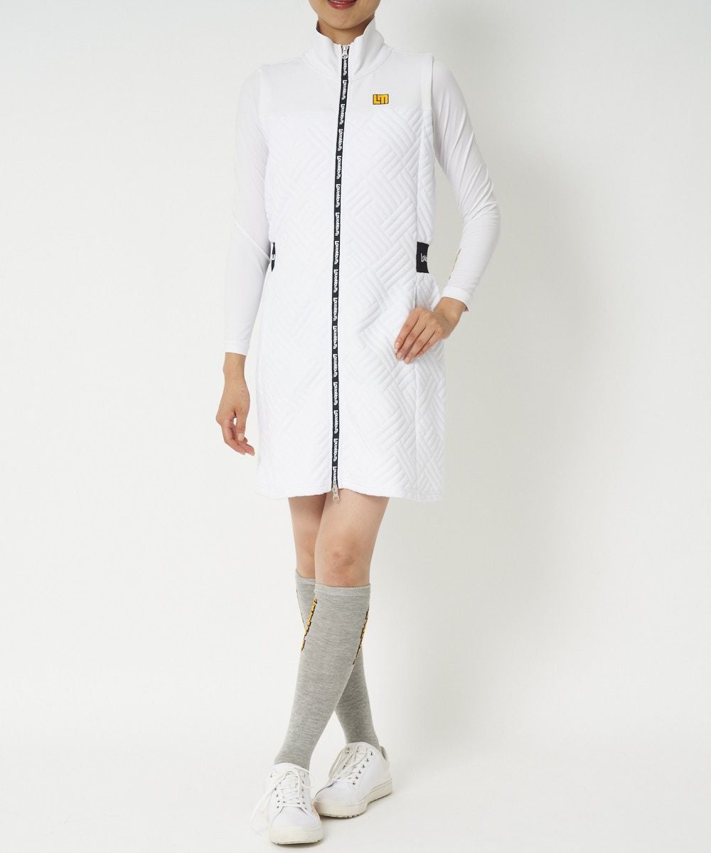オリジナルのLMロゴ入り袋ジャガードとダンボールニットの異素材の組み合わせデザインで一枚でもインパクトのあるワンピース。 プリントファスナーやウェストロゴジャガードがポイントのデザインです。