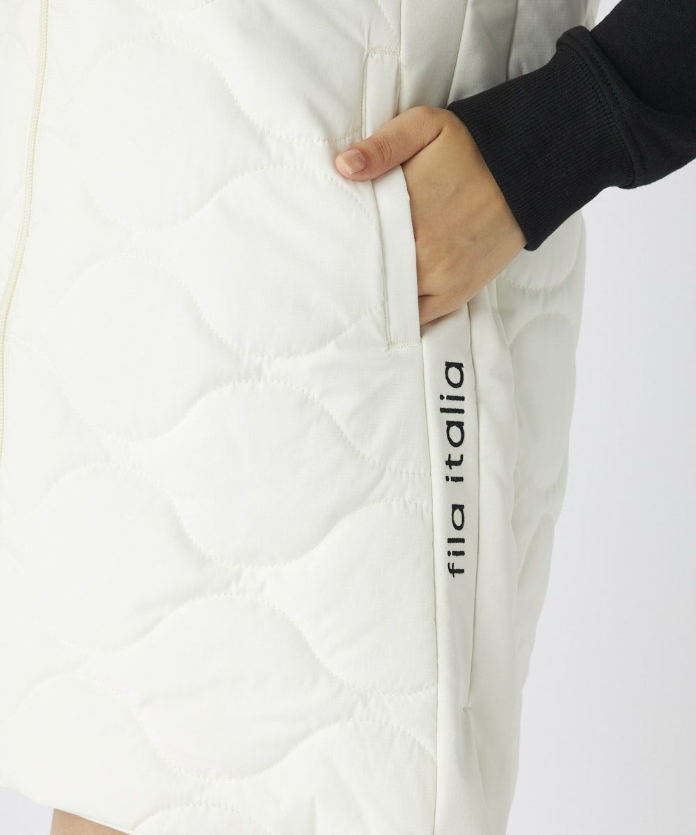 ストレッチタフタに中綿を施したキルト素材を使用。撥水加工、保温、蓄熱、ストレッチといった多機能性を備え、秋冬のラウンドを全天候で快適にサポートします。特に背中部分には蓄熱裏地を採用、また脇はストレッチ性の高いボンディング素材で切り替えることで、暖かさとスイング時の動きやすさを徹底的に追求しています。