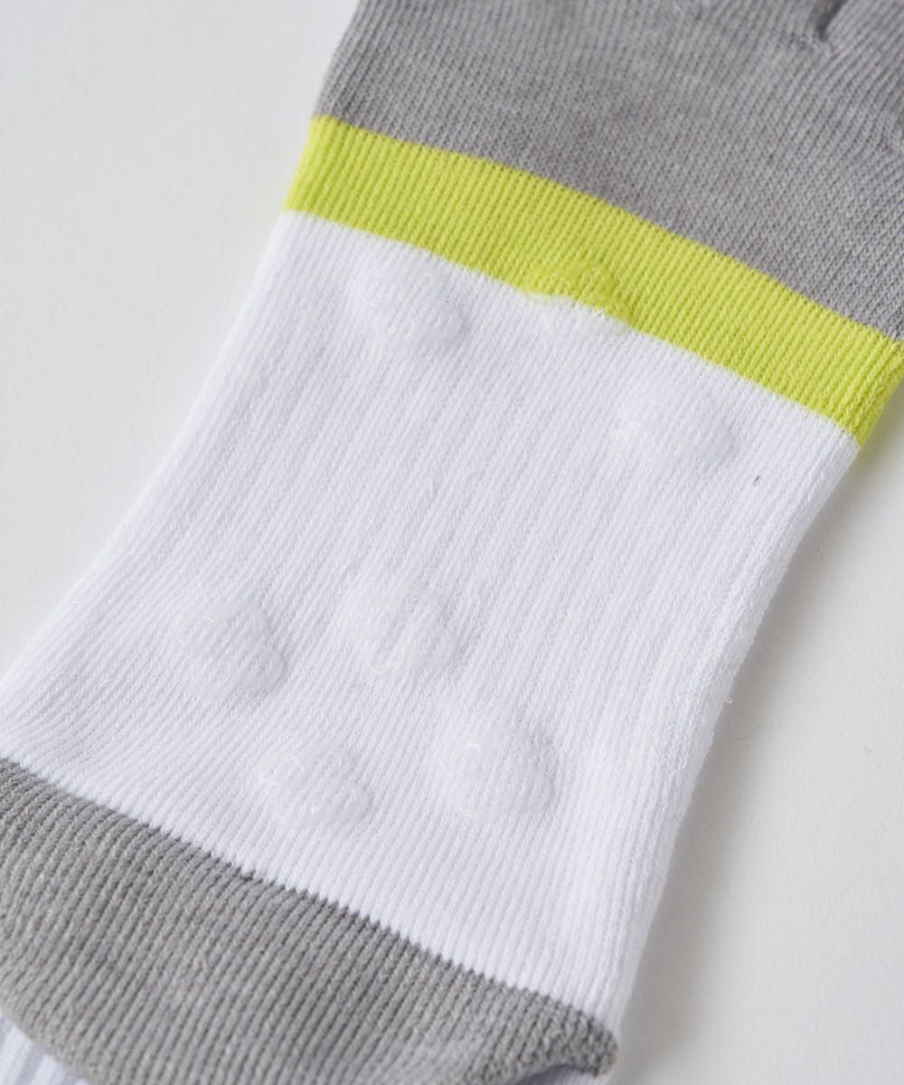 5本指を別々に包み込んだ快適な履き心地のソックス。消臭効果がある糸を使用し、つま先を足裏部分に厚みのあるパイル編みを採用。甲部分に着圧でフィット、長時間のラウンド中の足をフォローします。