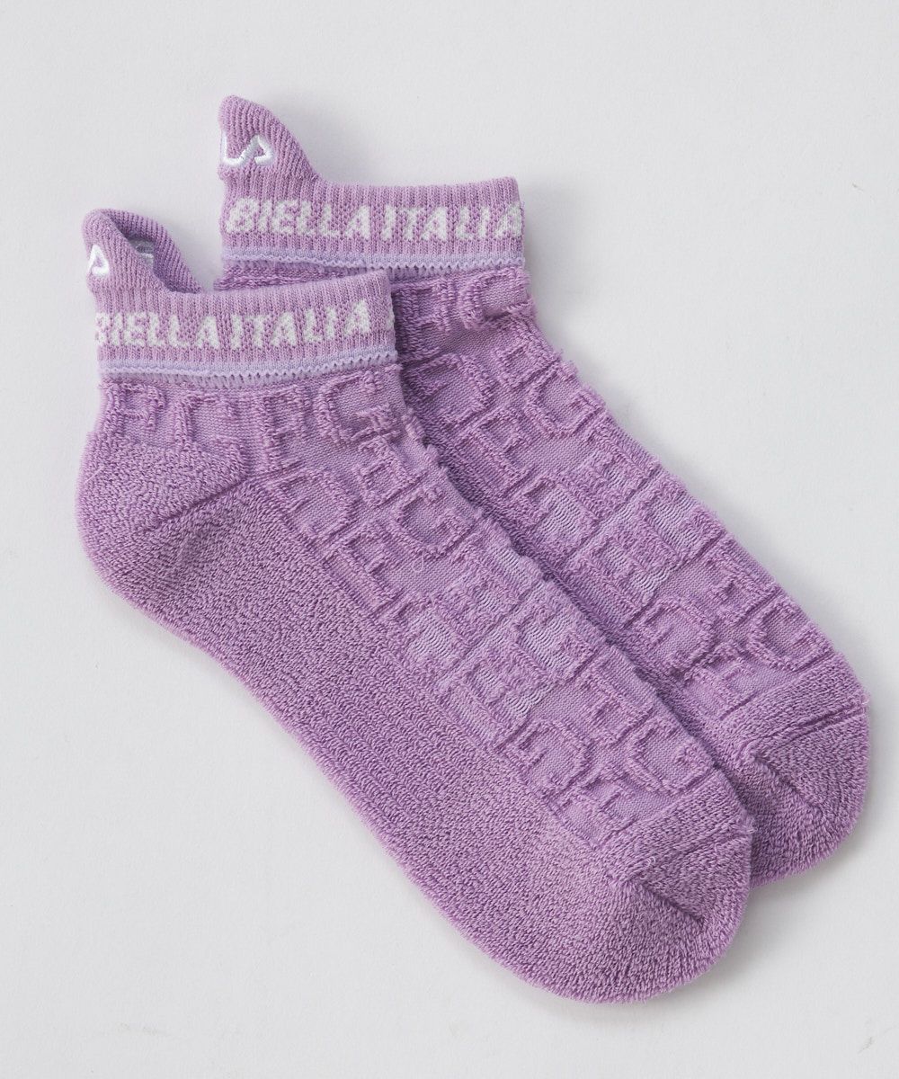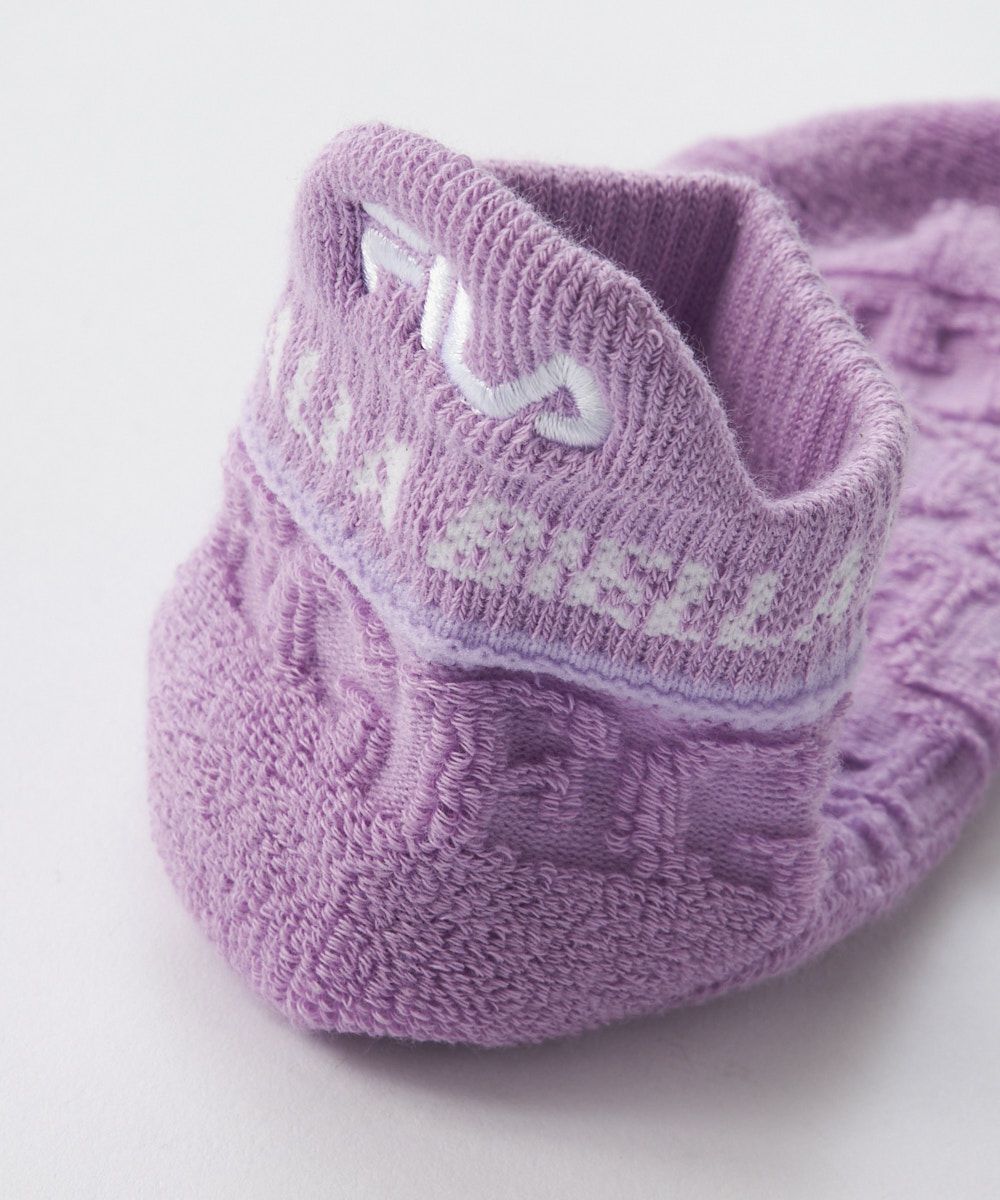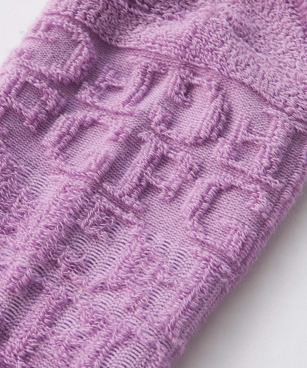 モノグラム柄を同色パイル編みで表現しているので、無地ライクに使えます。 足底がたわむのが気になる方に向けた、足底の滑り止めプリント無しの仕様。