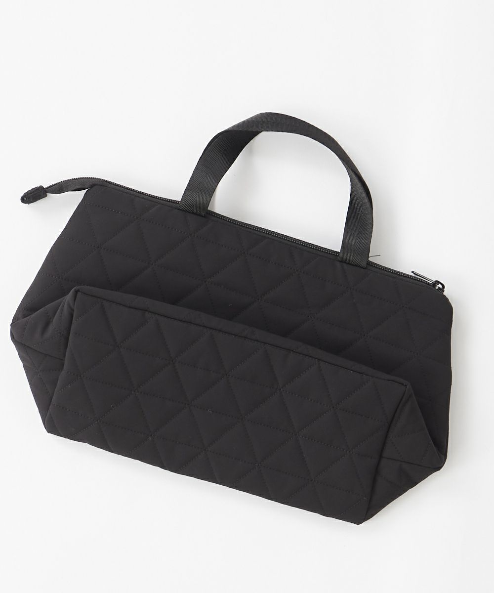ふんわりとしたキルティング素材を使用し、持った瞬間から軽さと柔らかさを実感できます。 中身をしっかり守りながら、荷物が増えても負担になりにくい快適な使い心地です。 ほどよくハリがあるので、置いたときも形がきれいに決まり、上品な雰囲気をキープします。