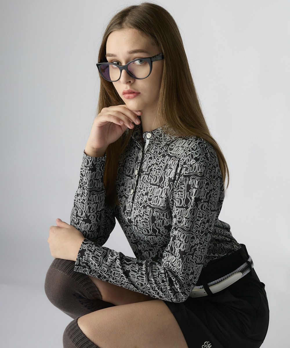 さりげないリボンロゴ柄が大人の女性らしさを引き立てる上品な長袖シャツ。