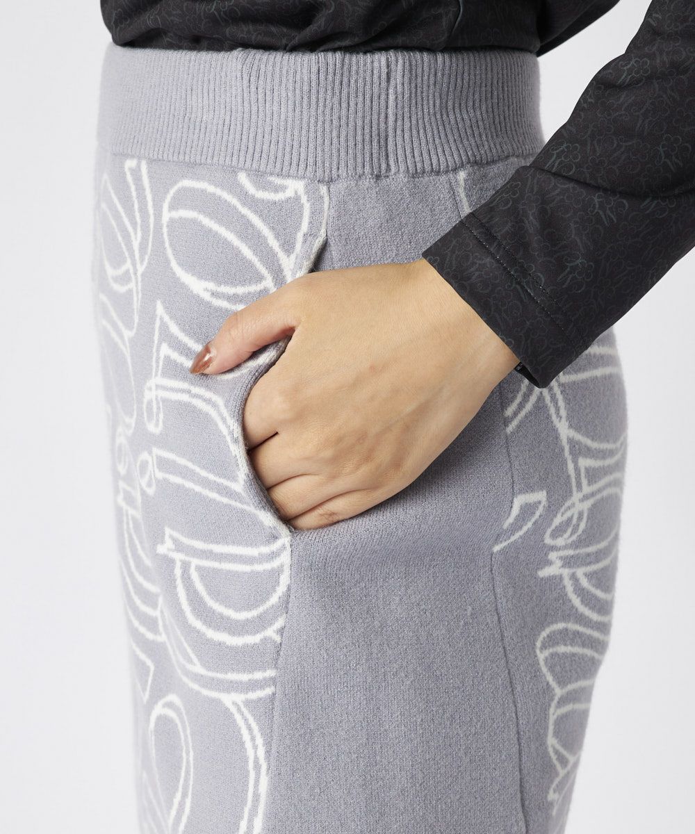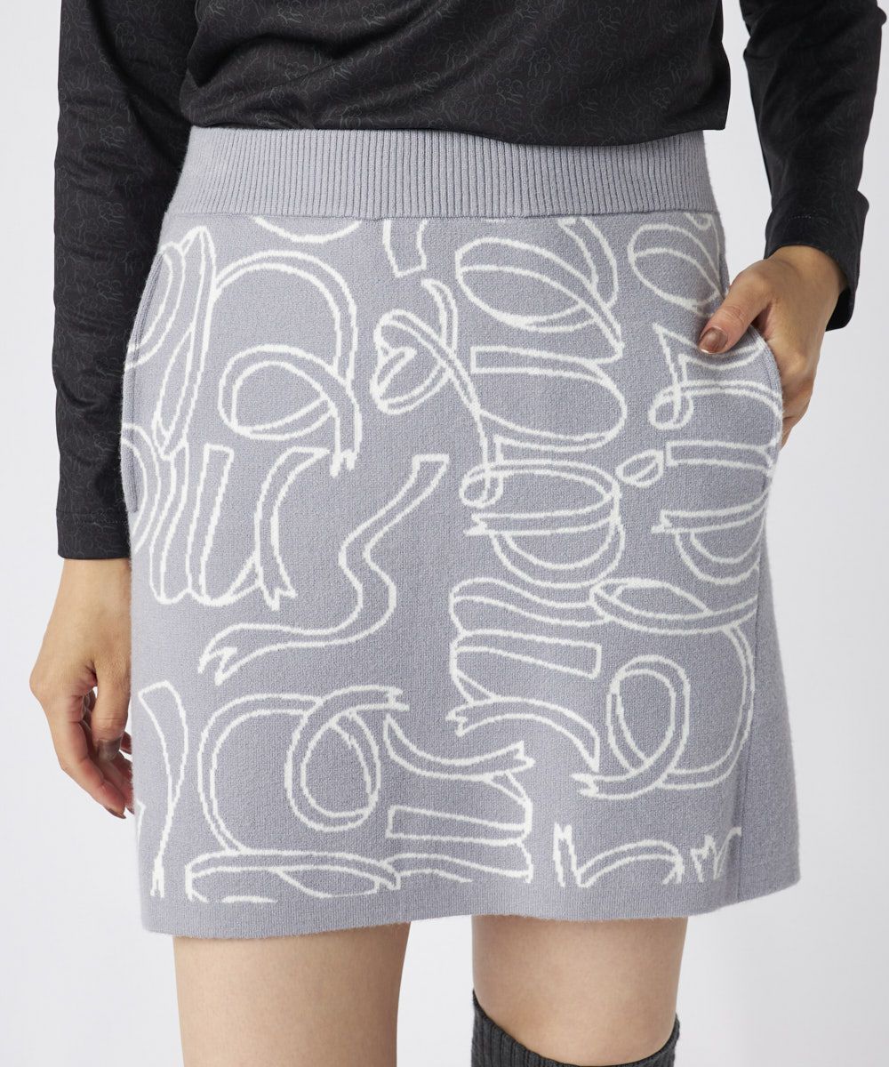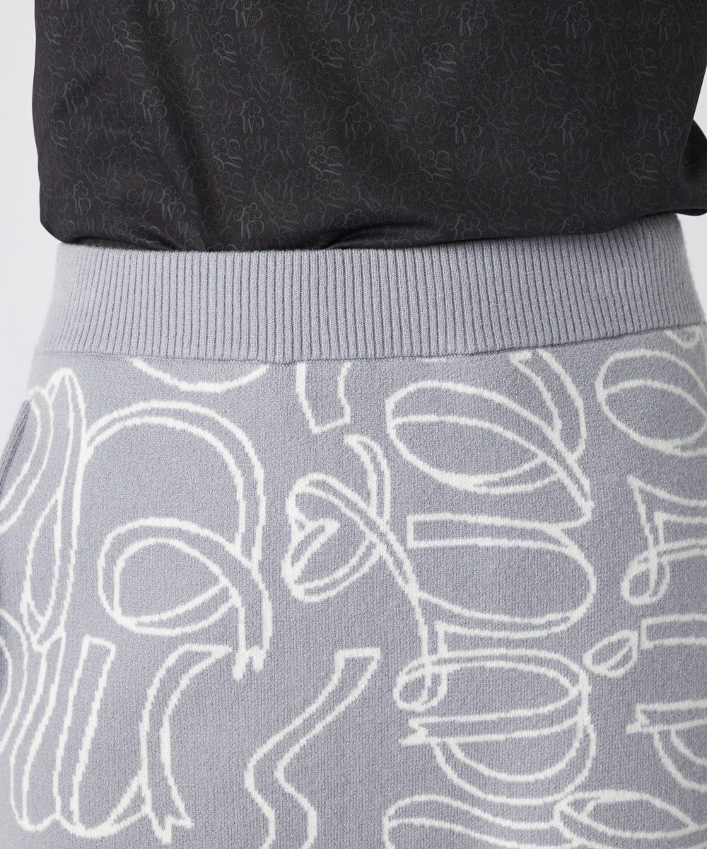 大胆なリボンロゴをあしらった、印象的なニットスカート。