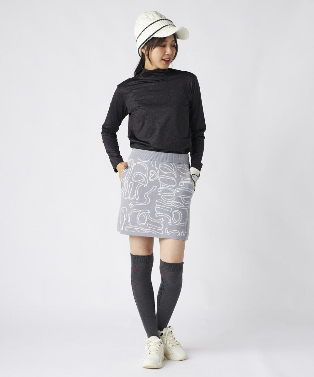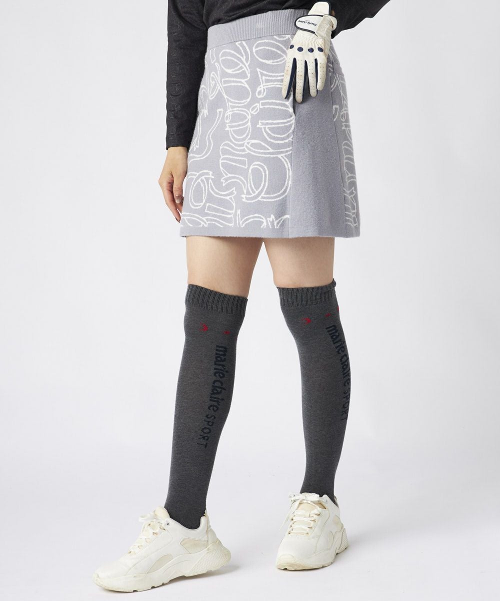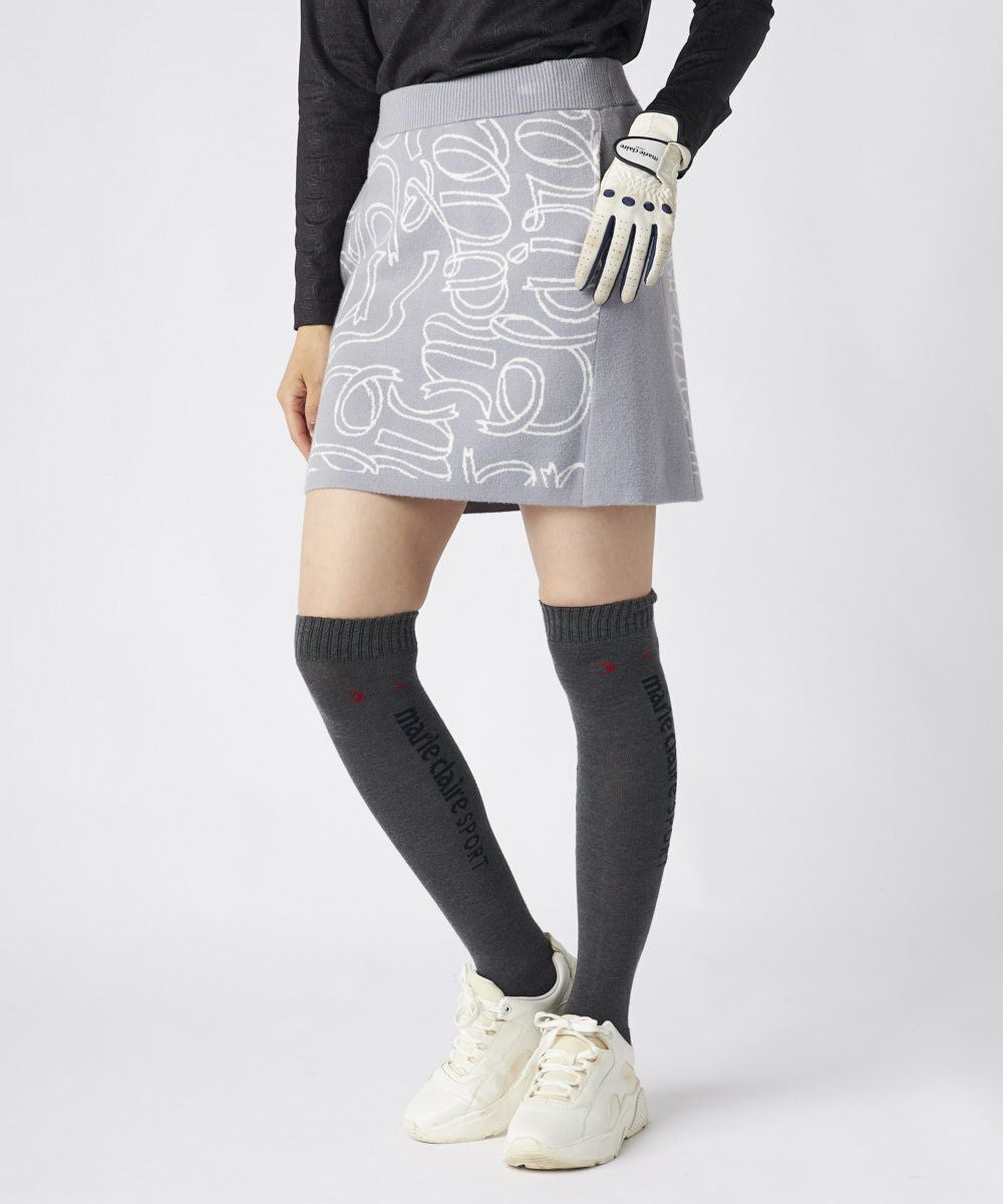 大胆なリボンロゴをあしらった、印象的なニットスカート。